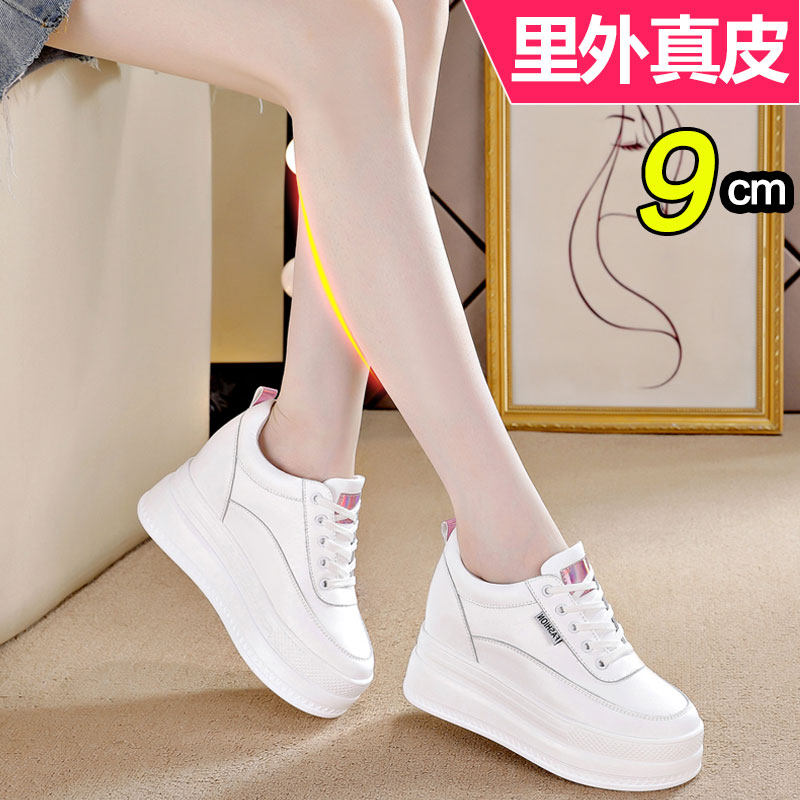 真皮小白鞋内增高女鞋厚底松糕鞋2025新款百搭显瘦休闲白色旅游鞋