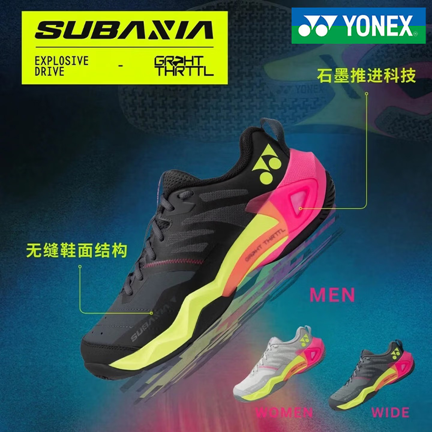 尤尼克斯YONEX 26款专业羽毛球鞋男女训练比赛运动鞋带碳板缓震