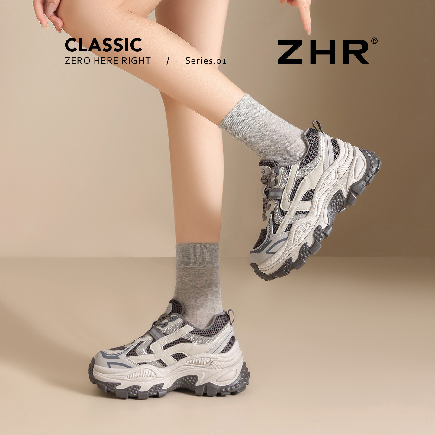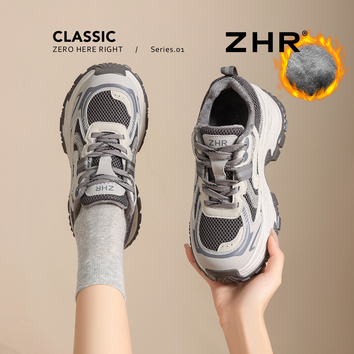ZHR增高厚底老爹鞋女2025冬季新款加绒女鞋显脚小巨好看运动鞋子
