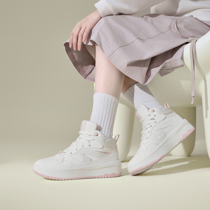 乔丹女款高帮板鞋女鞋2026春夏季新款革面厚底运动鞋增高小白鞋女