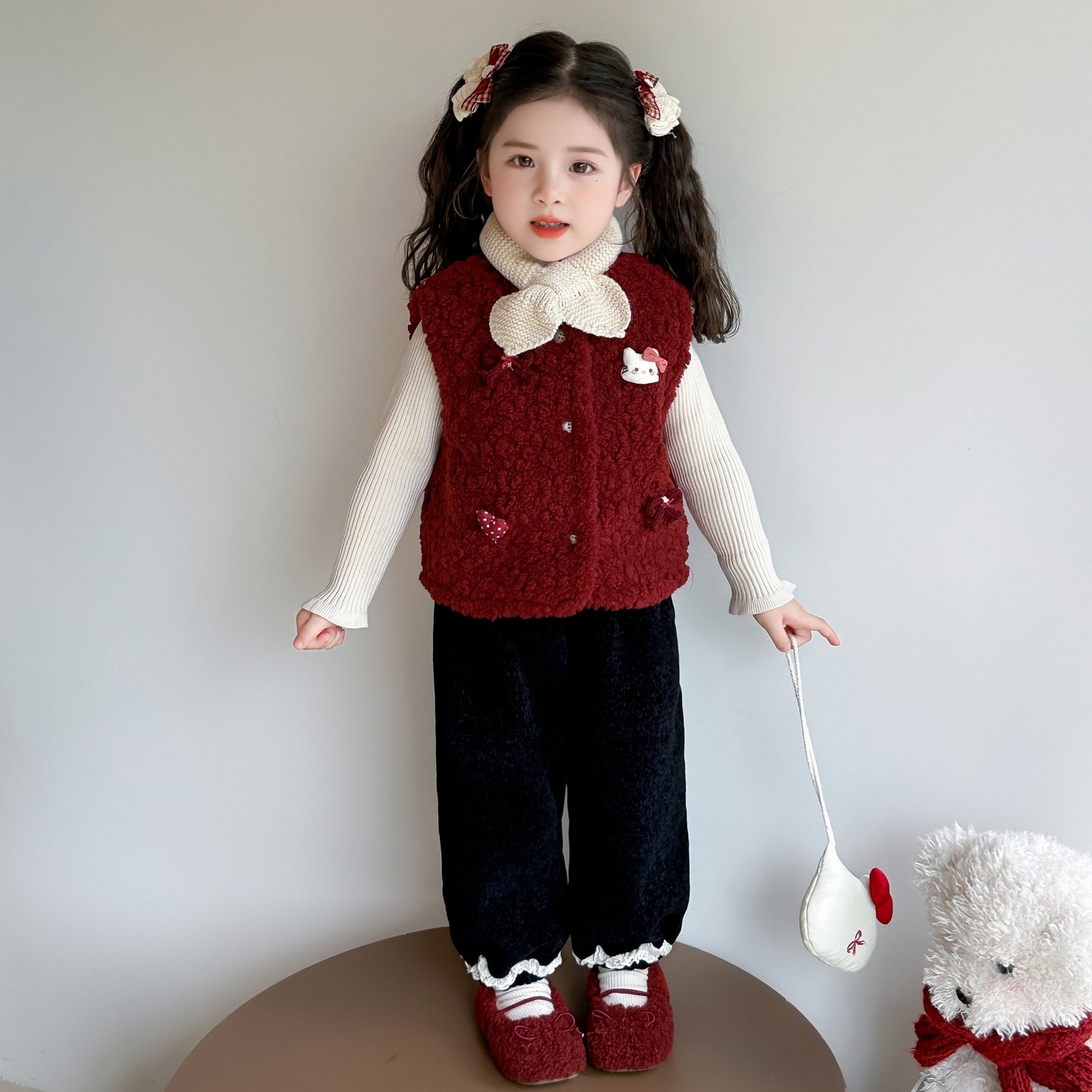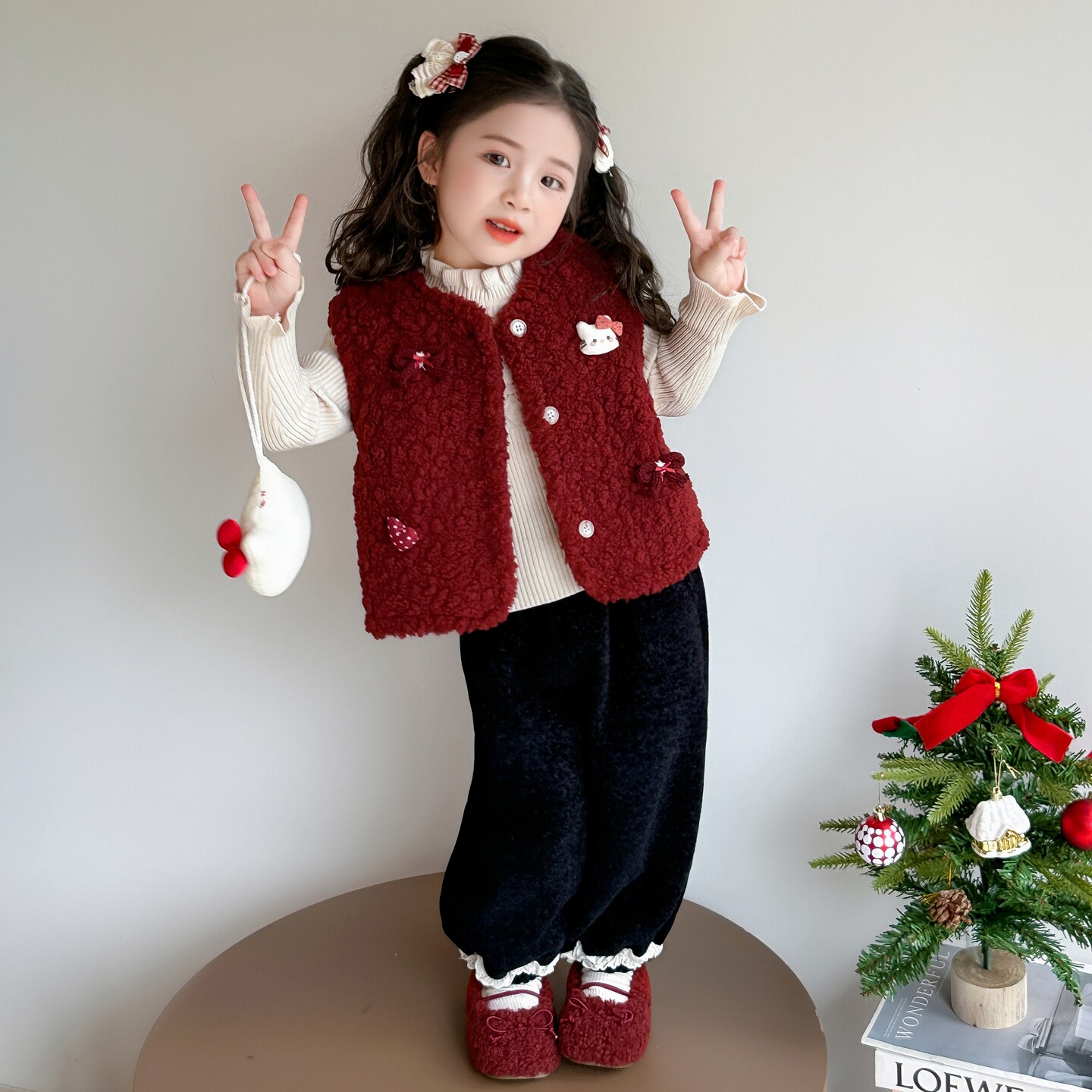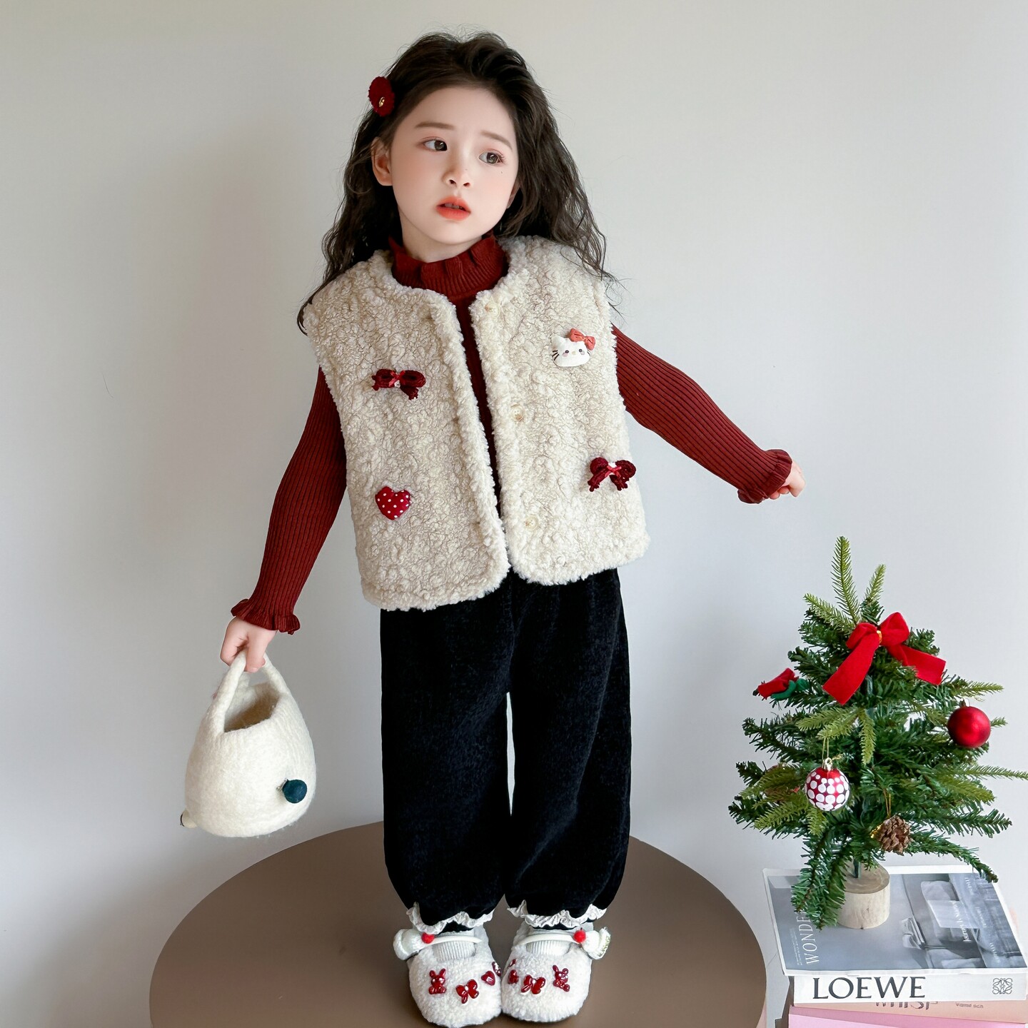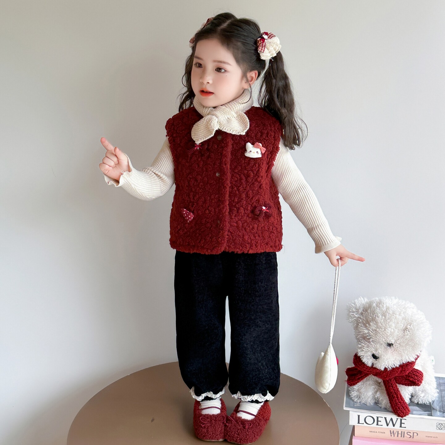 女童马甲秋冬季2026新款儿童洋气时髦女宝宝冬装加绒套装加厚猫咪