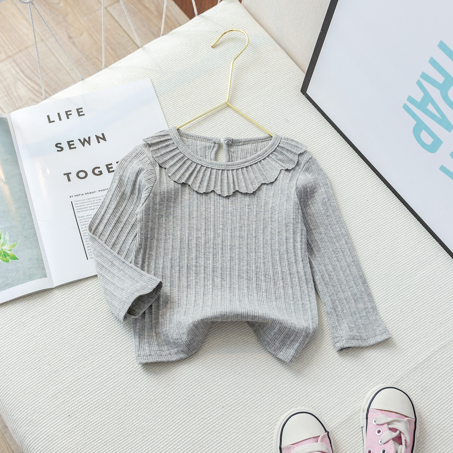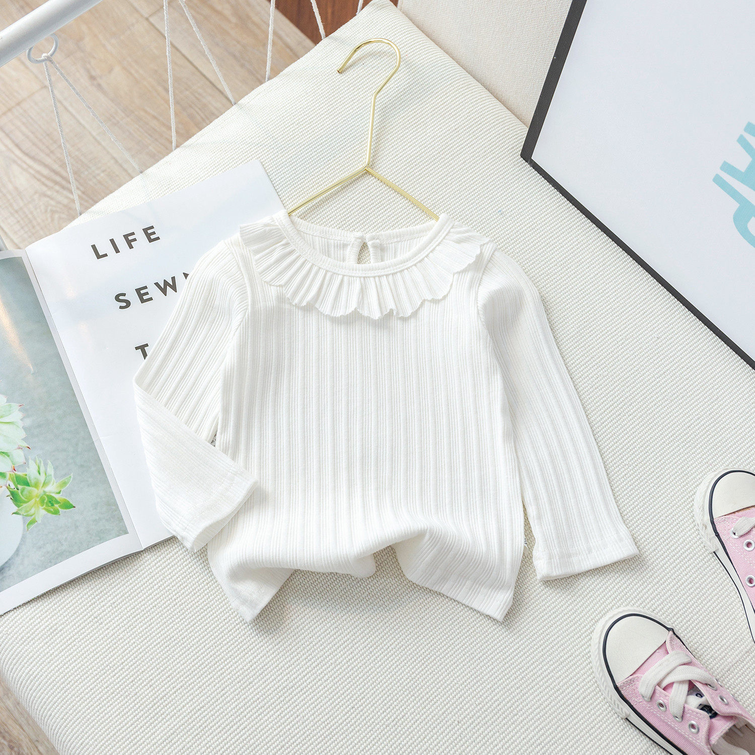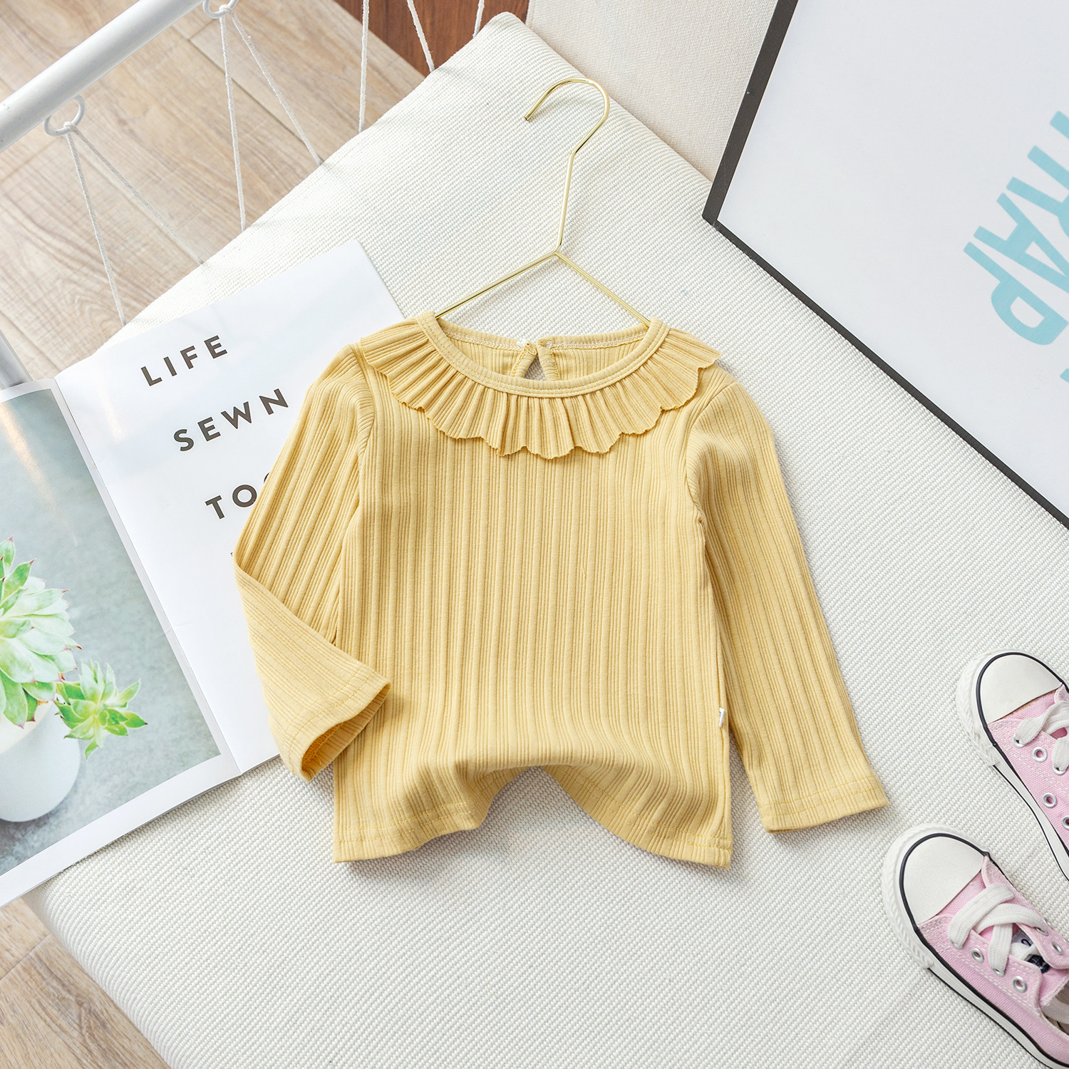 女童春秋装打底衫宝宝洋气时髦薄款纯色长袖上衣外穿儿童圆领翻领