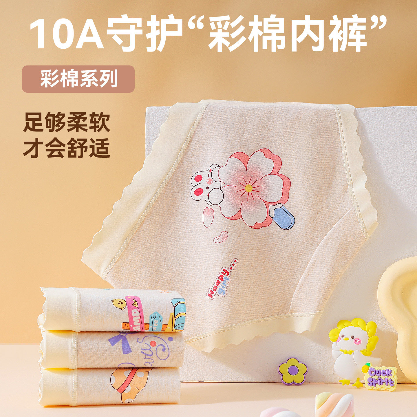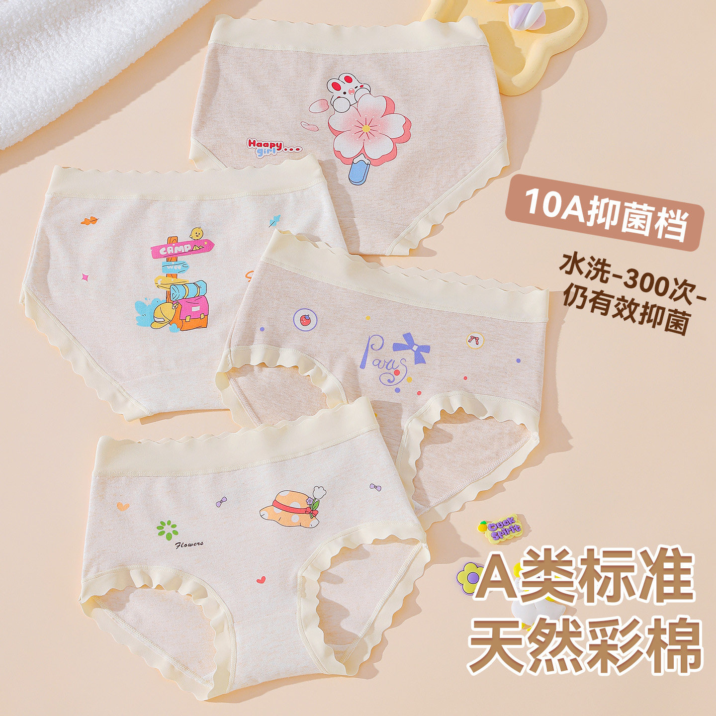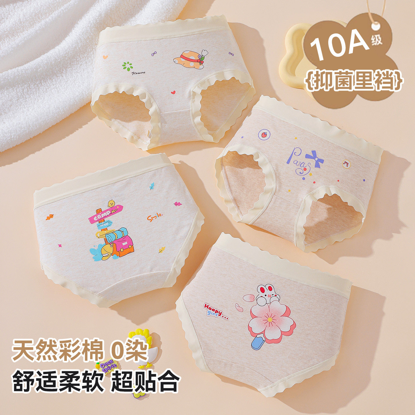 益生菌女童天然彩棉纯棉无染色100A抑菌三角裤女孩少女发育期内裤