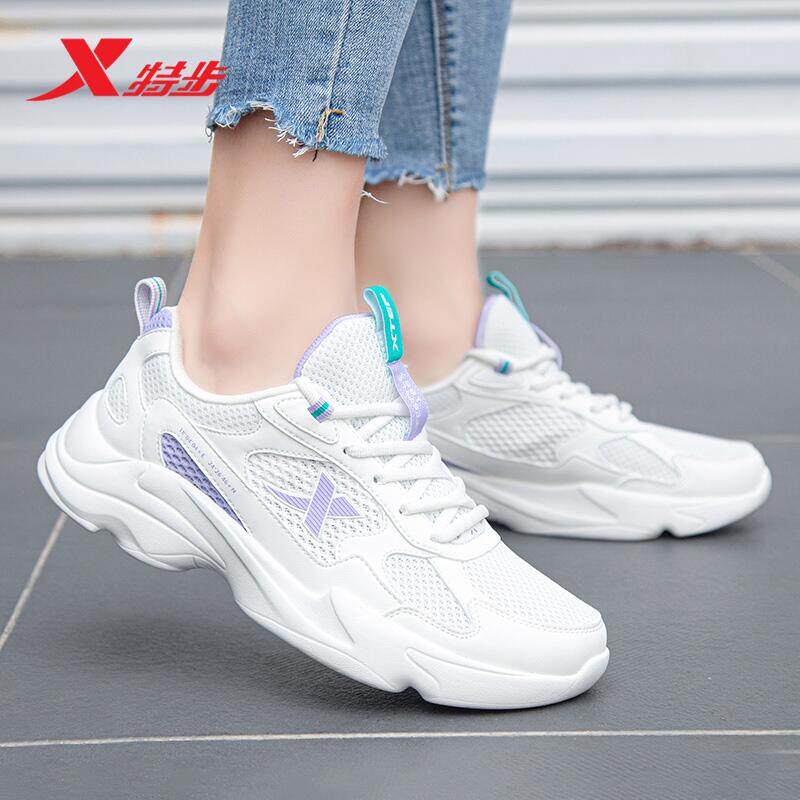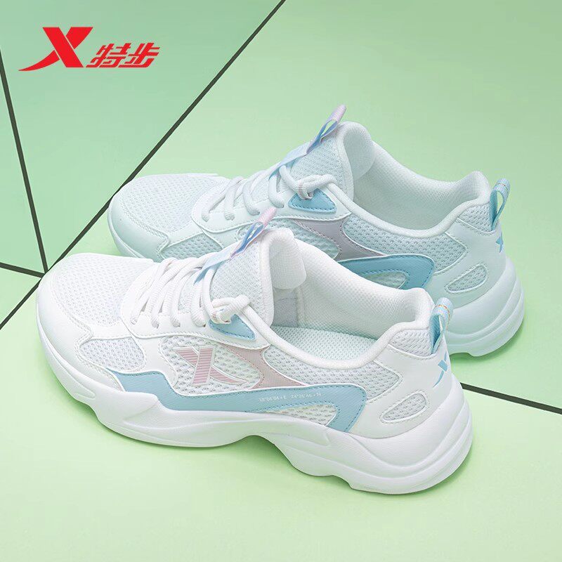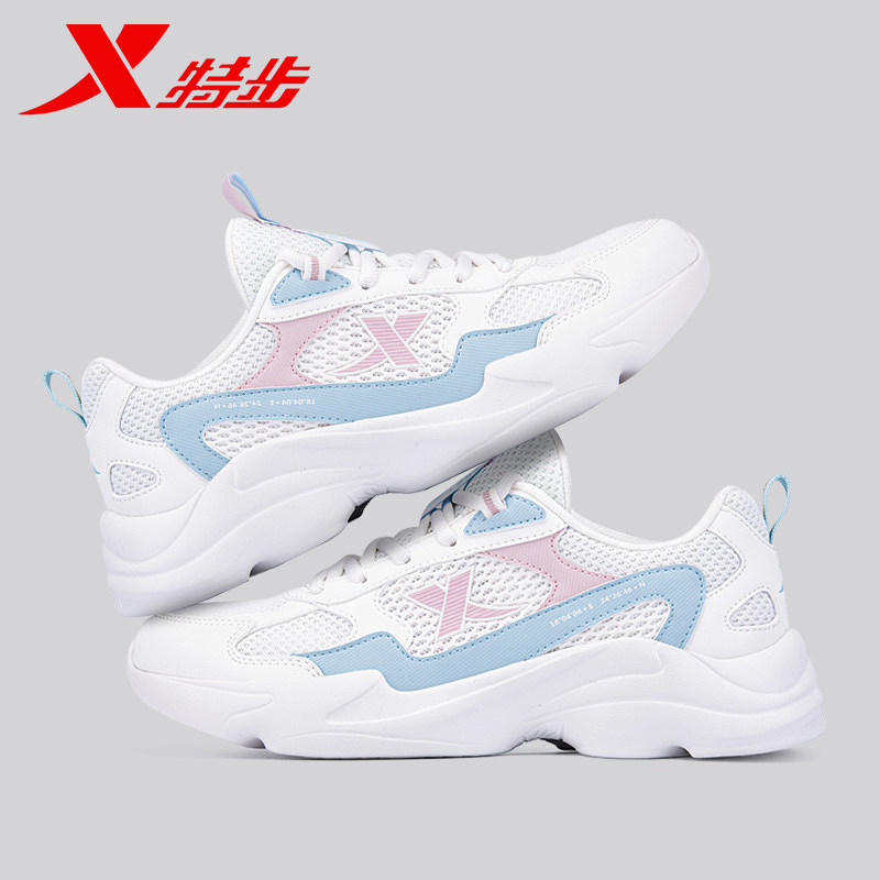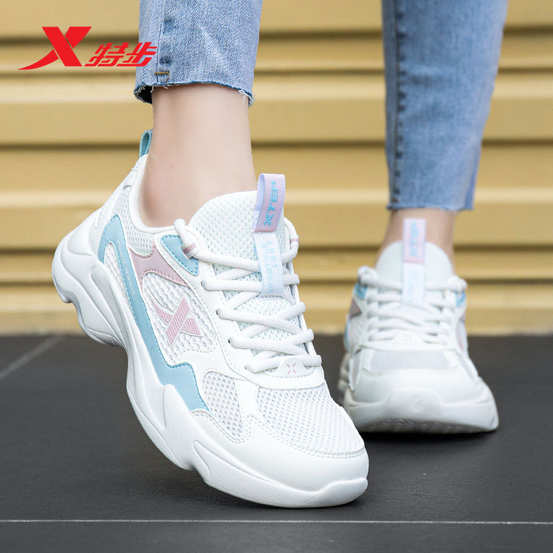 特步女鞋小白鞋春季新款运动鞋女款透气网面轻便休闲鞋情侣老爹鞋