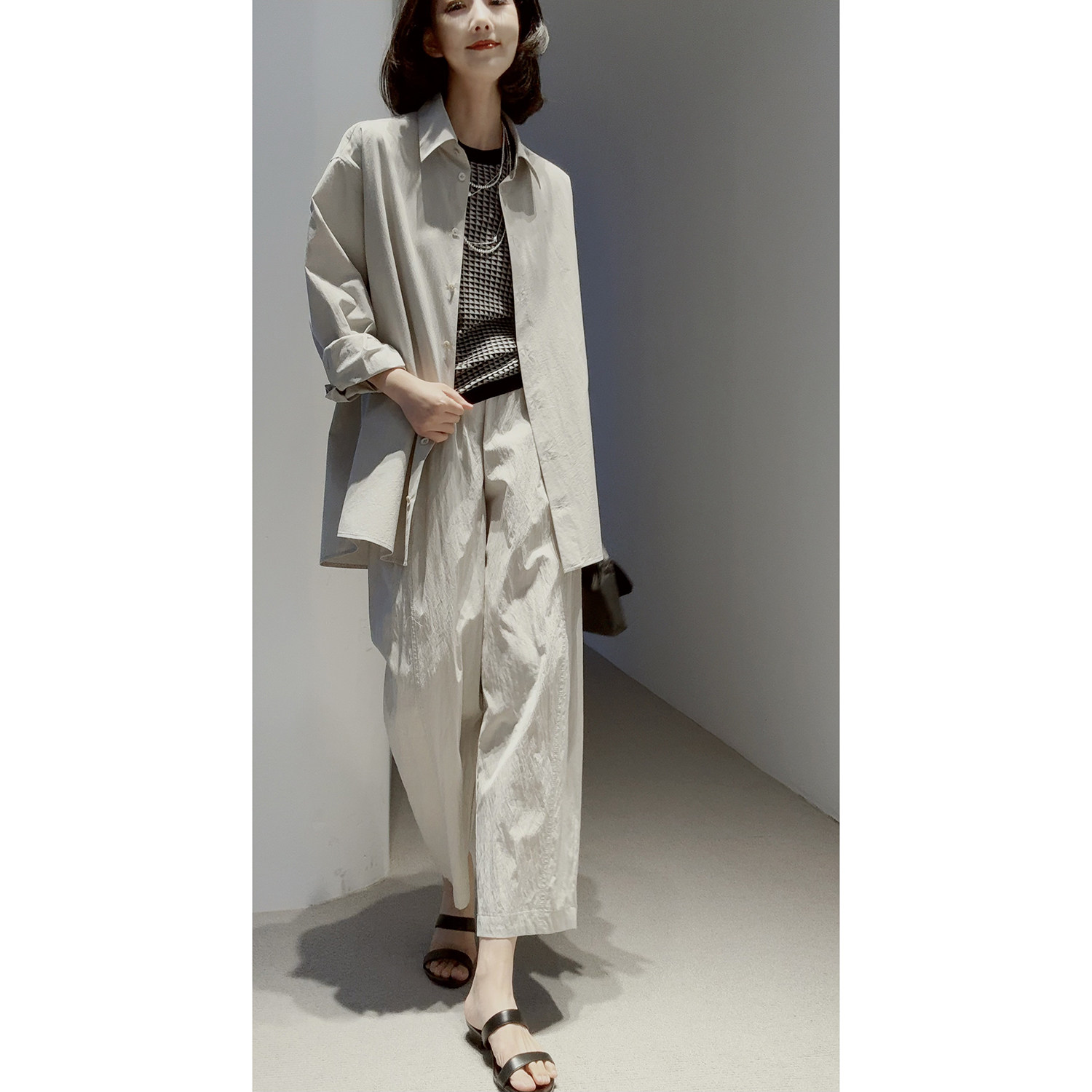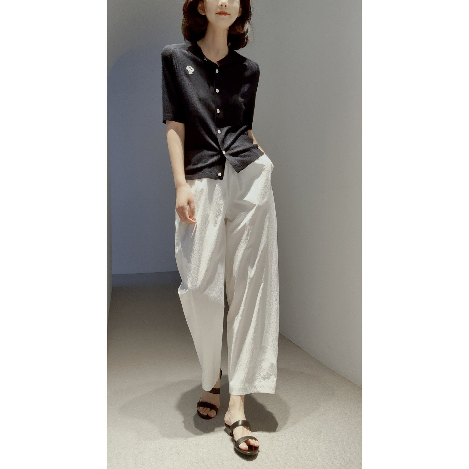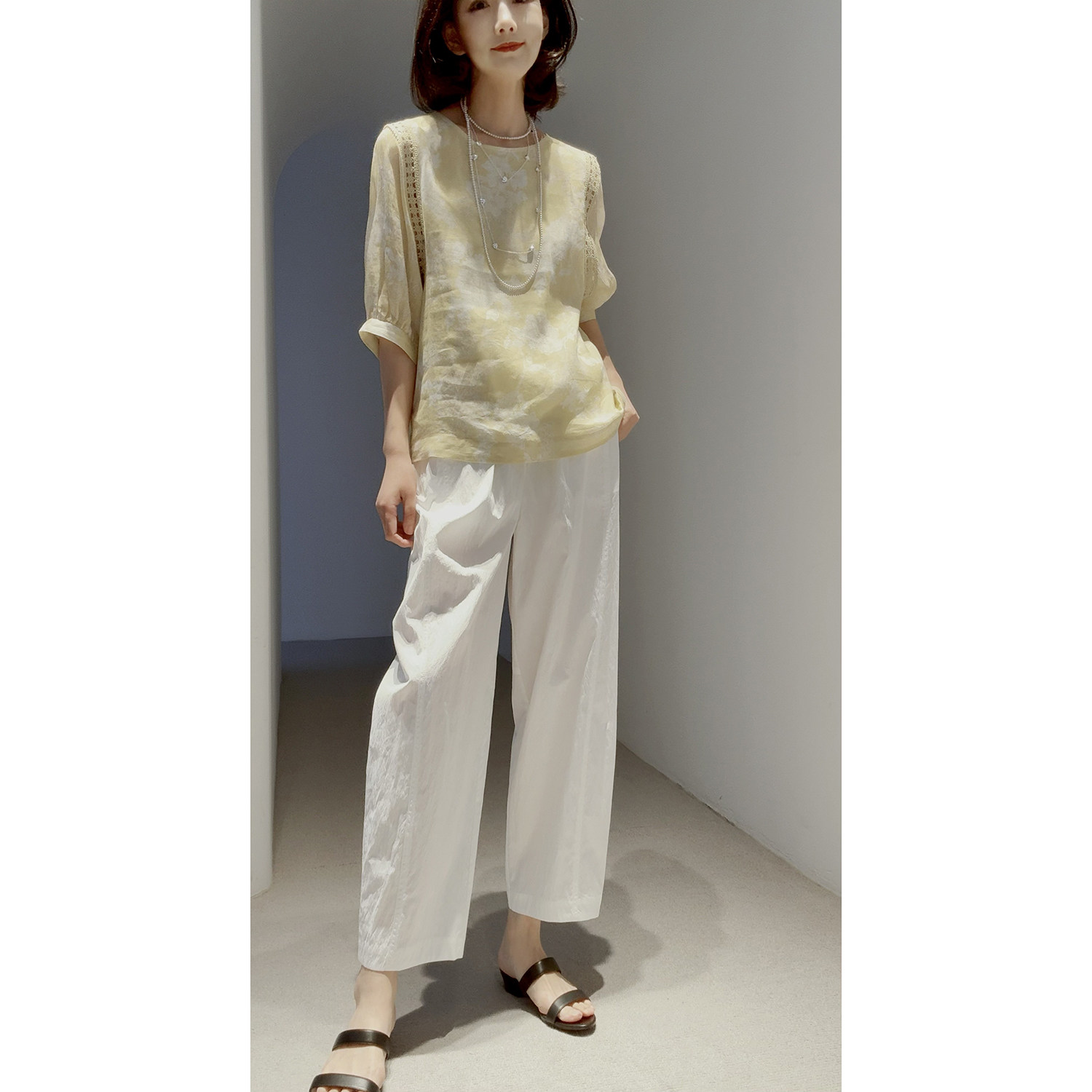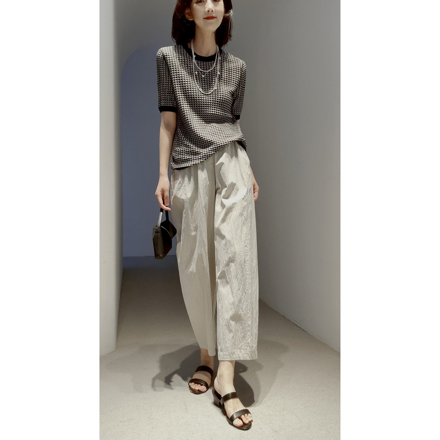 口碑爆款回归~透气舒爽免烫 造型感褶皱肌理進口高支棉九分气球裤
