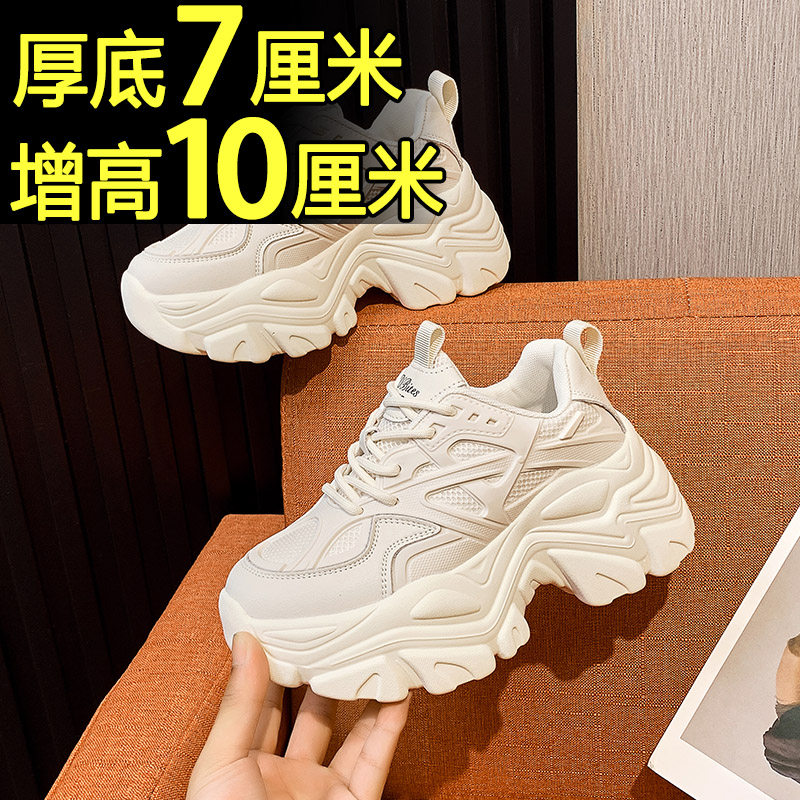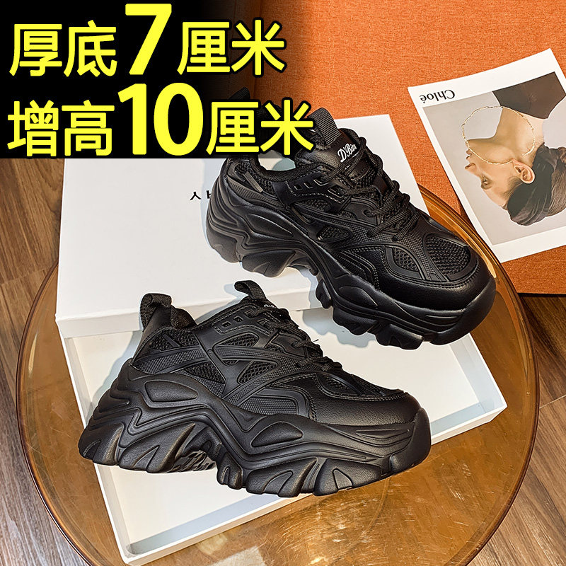 老爹鞋女2026新款夏季透气网面休闲黑色炸街运动厚底内增高小白鞋