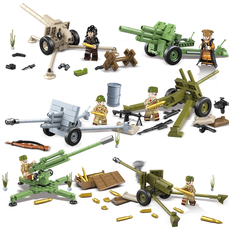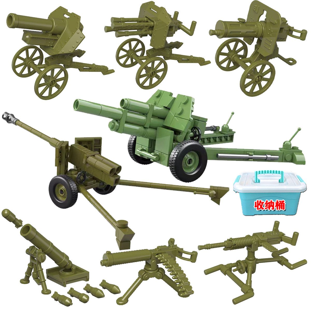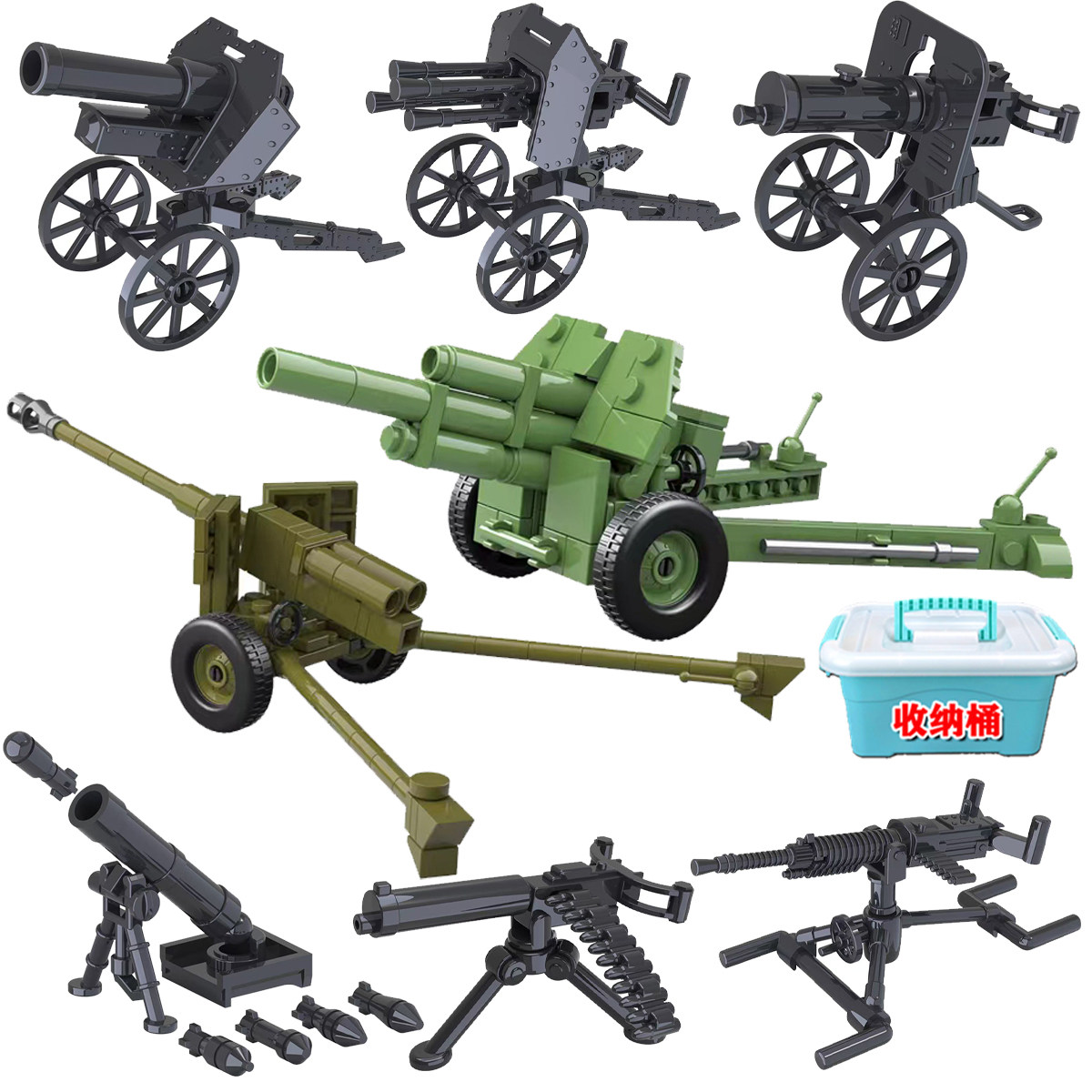 适用乐高积木二战军事士兵人仔双色武器机枪坦克炮车拼装玩具男孩