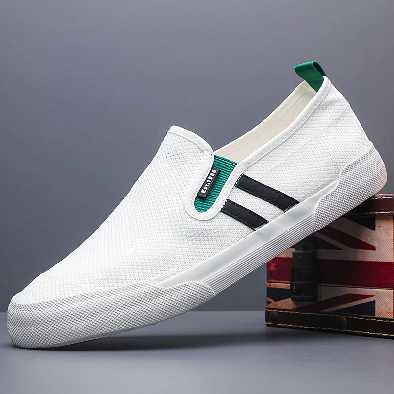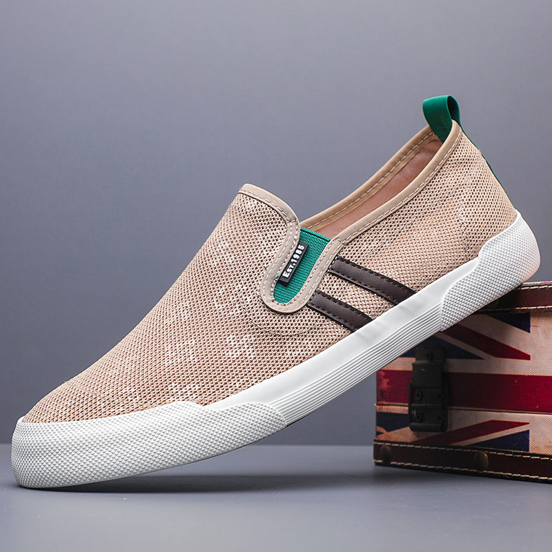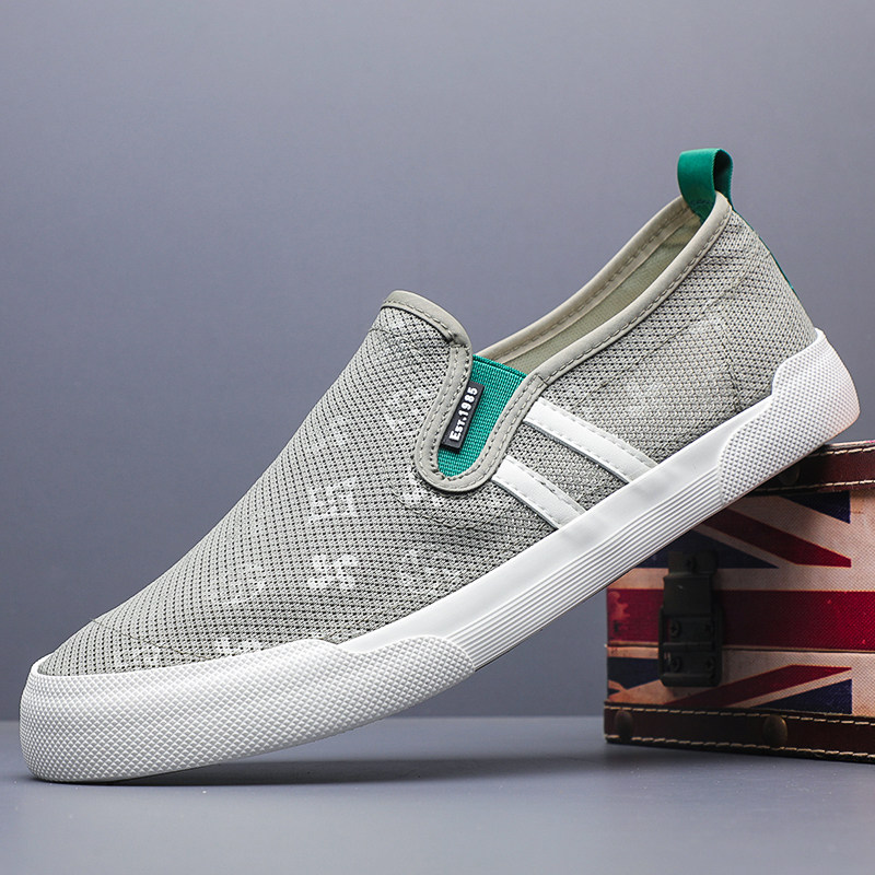 2026新款男鞋春季透气一脚蹬帆布鞋男士休闲鞋潮流板鞋软底网鞋男