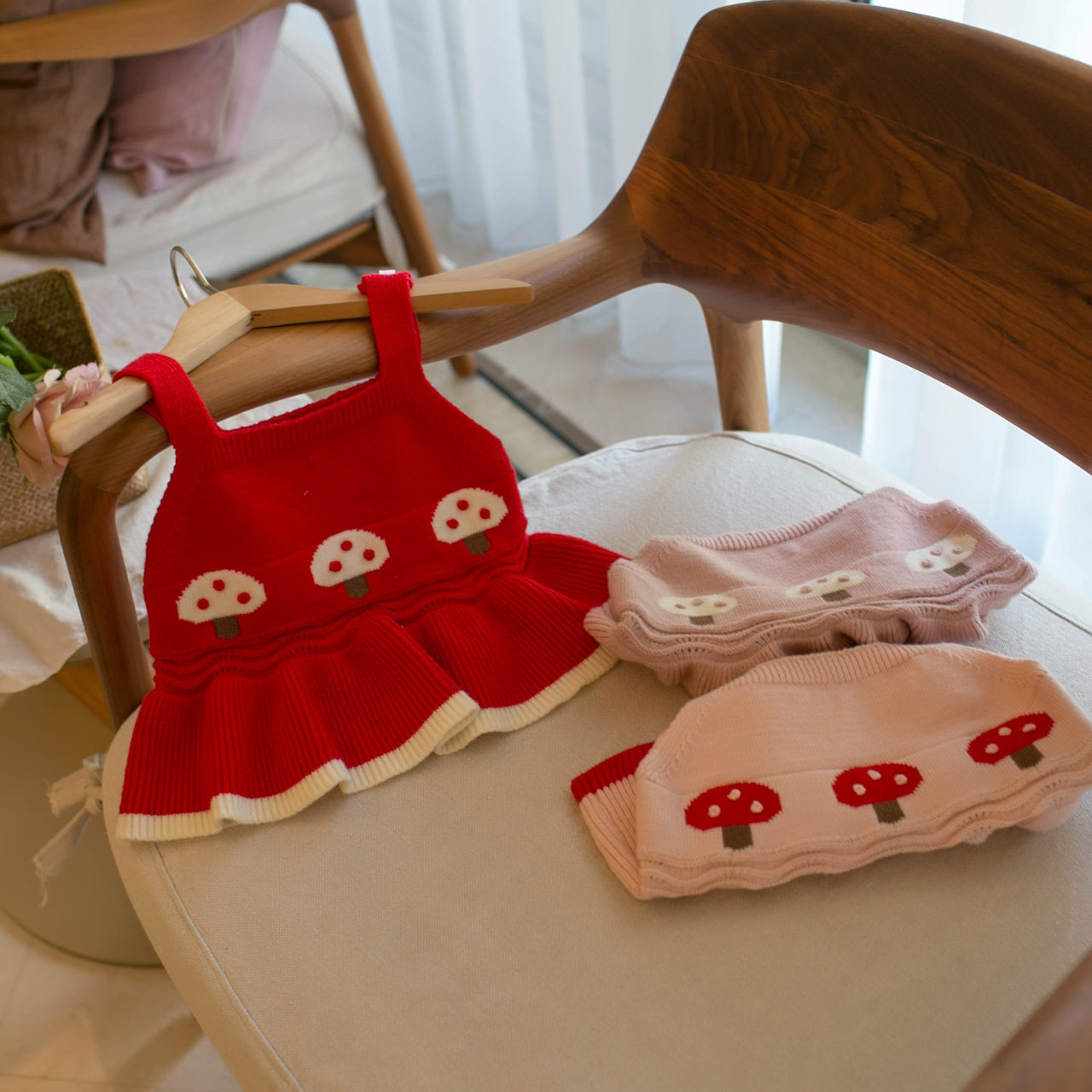 春秋新款婴儿童装小蘑菇裙式毛衣背心女童针织小马甲宝宝吊带坎肩