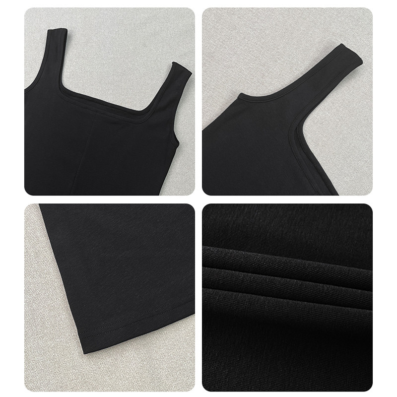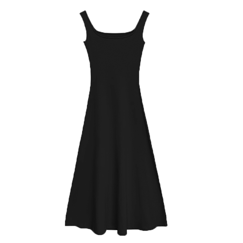 藏蓝色吊带方领连衣裙女宽肩带背心裙子小个子长裙修身收腰a字夏