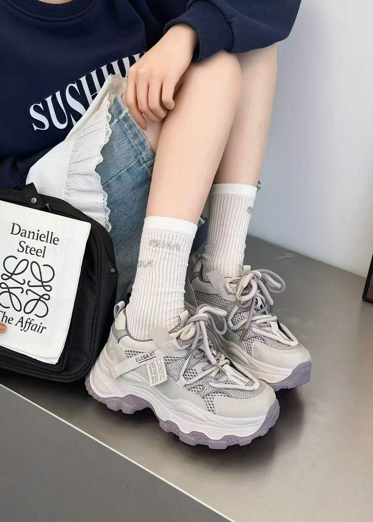 赛鸿真皮正品2026新款春夏厚底增高老爹鞋女百搭休闲透气单网鞋