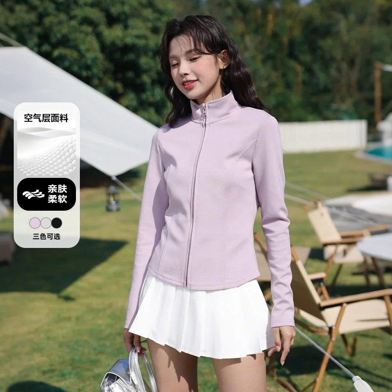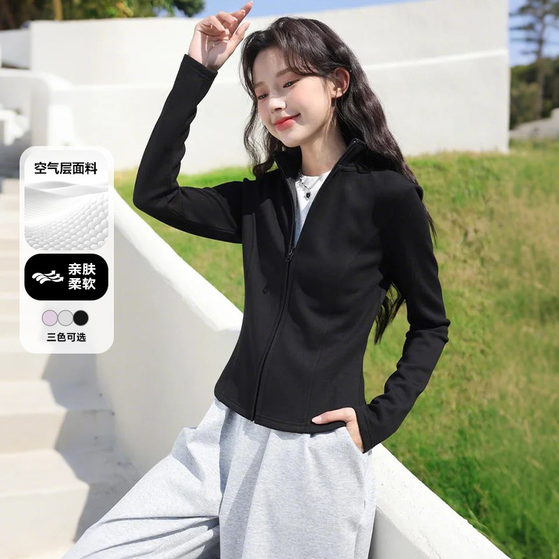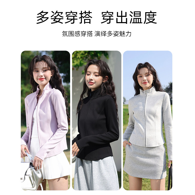 班尼路灰色立领开衫外套女款修身2026春秋新款正肩短款内搭上衣H