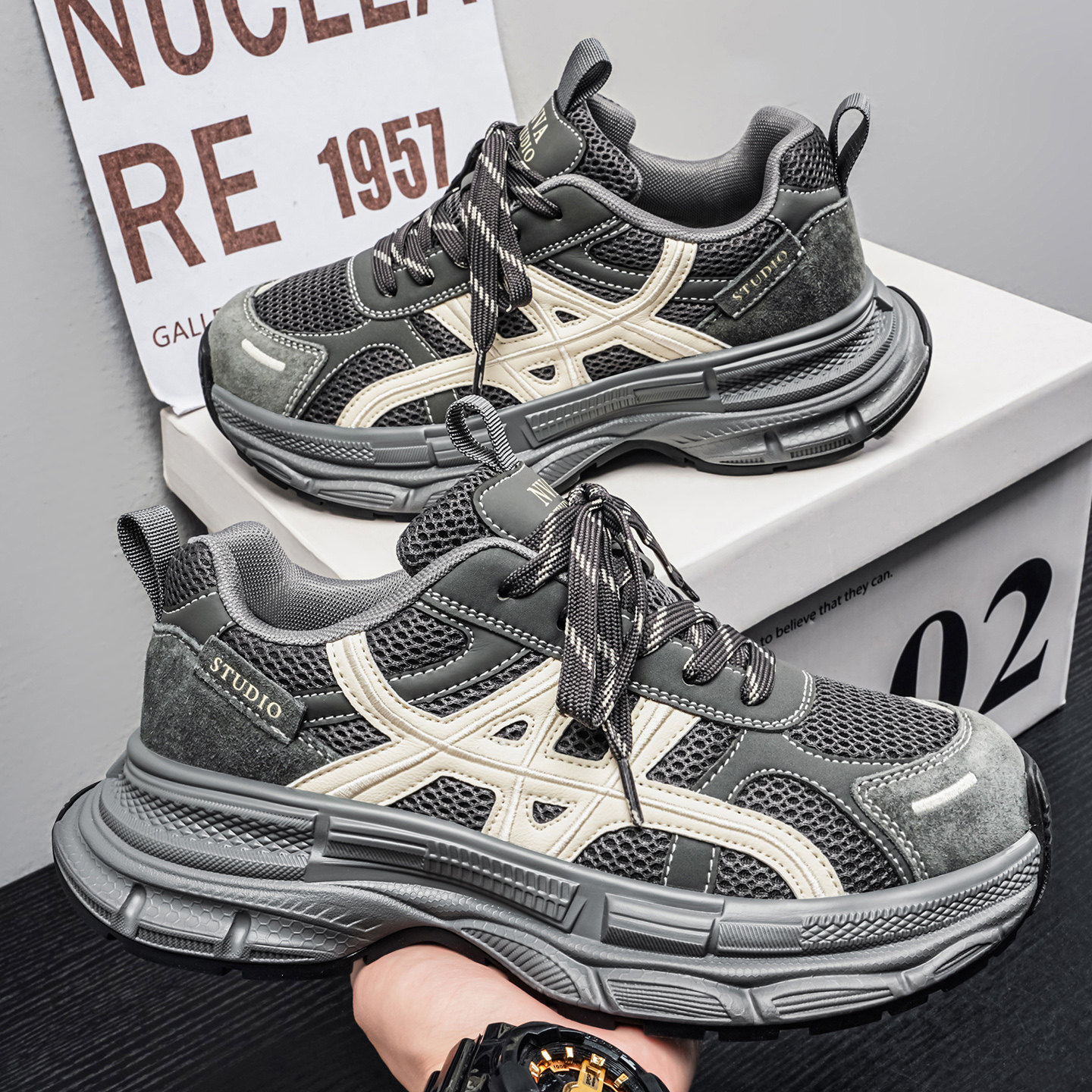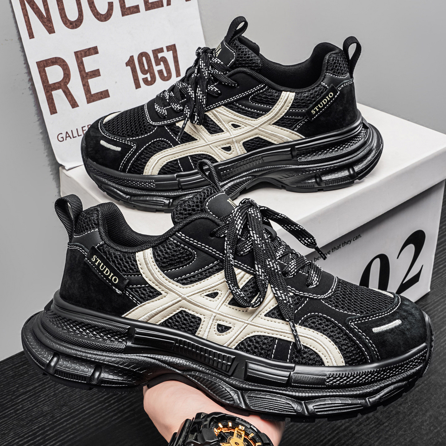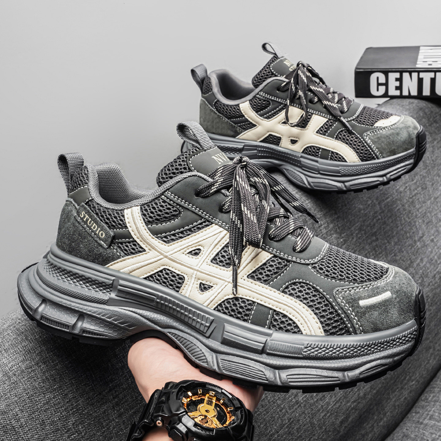 男士网面透气老爹鞋复古厚底增高春夏季运动休闲百搭潮流男鞋高端