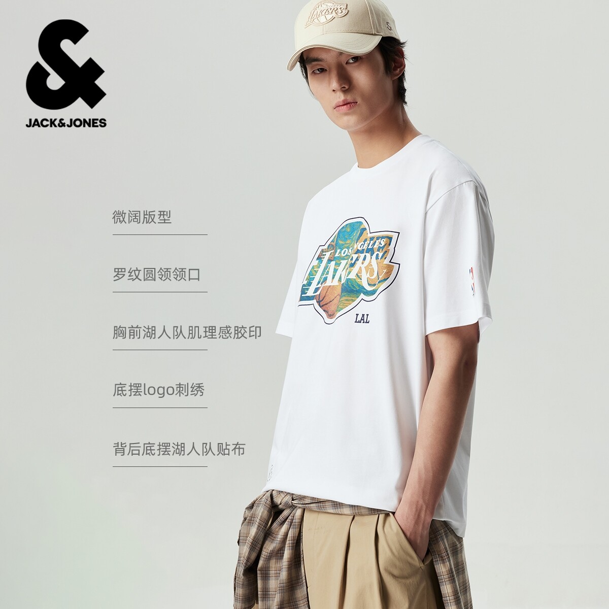 【复古回潮】杰克琼斯NBA联名湖人队男装T恤夏季短袖凉感圆领舒适