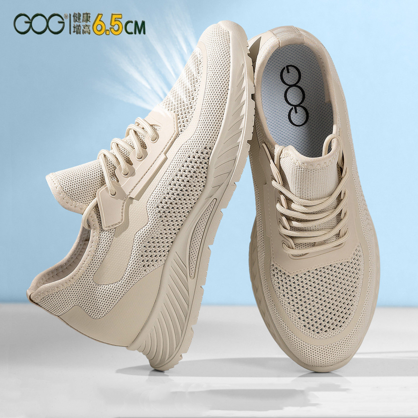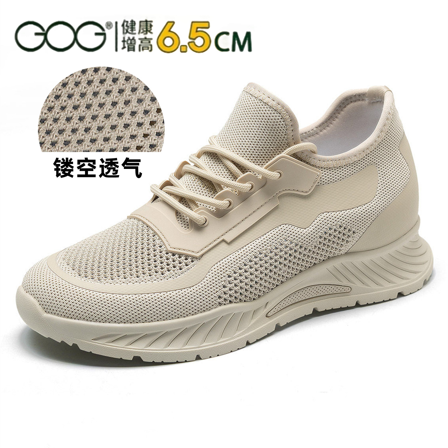 高哥增高鞋男款运动鞋软底软面鞋子夏季飞织透气男鞋内增高网面鞋