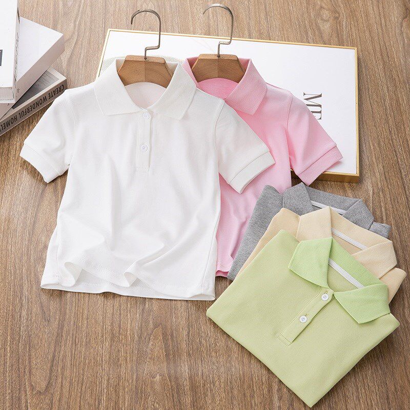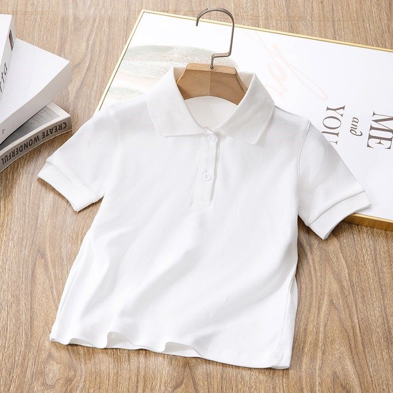 儿童短袖T恤夏季纯棉a类白色班服纯C色小学生校服女童男童POLO衫
