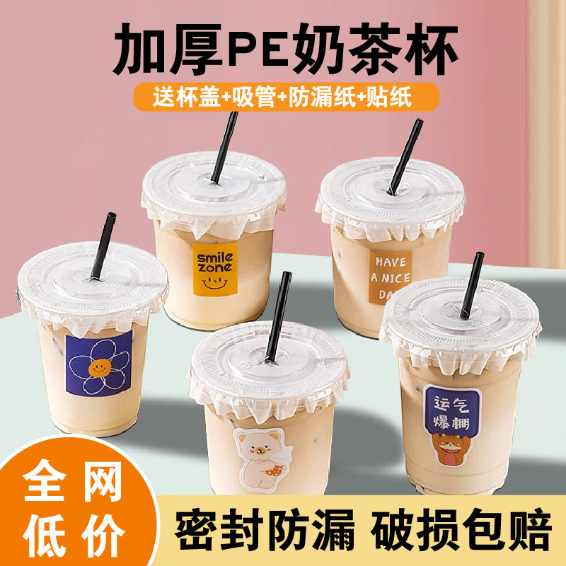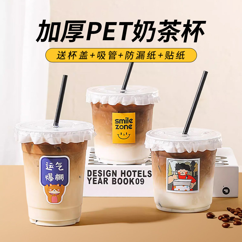 一次性咖啡杯子奶茶杯带盖塑料杯高档精致透明携带便携食品级果汁