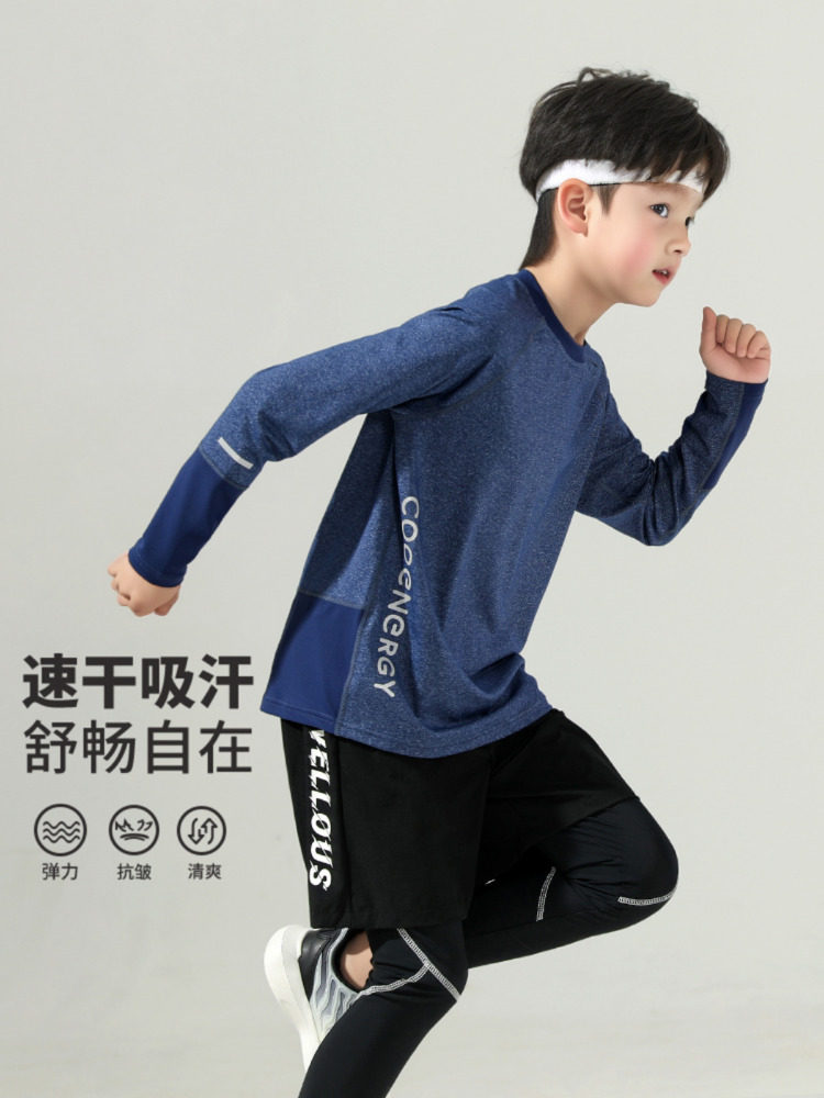 儿童速干衣男童运动t恤体能训练服篮球男孩上衣青少年羽毛球套装