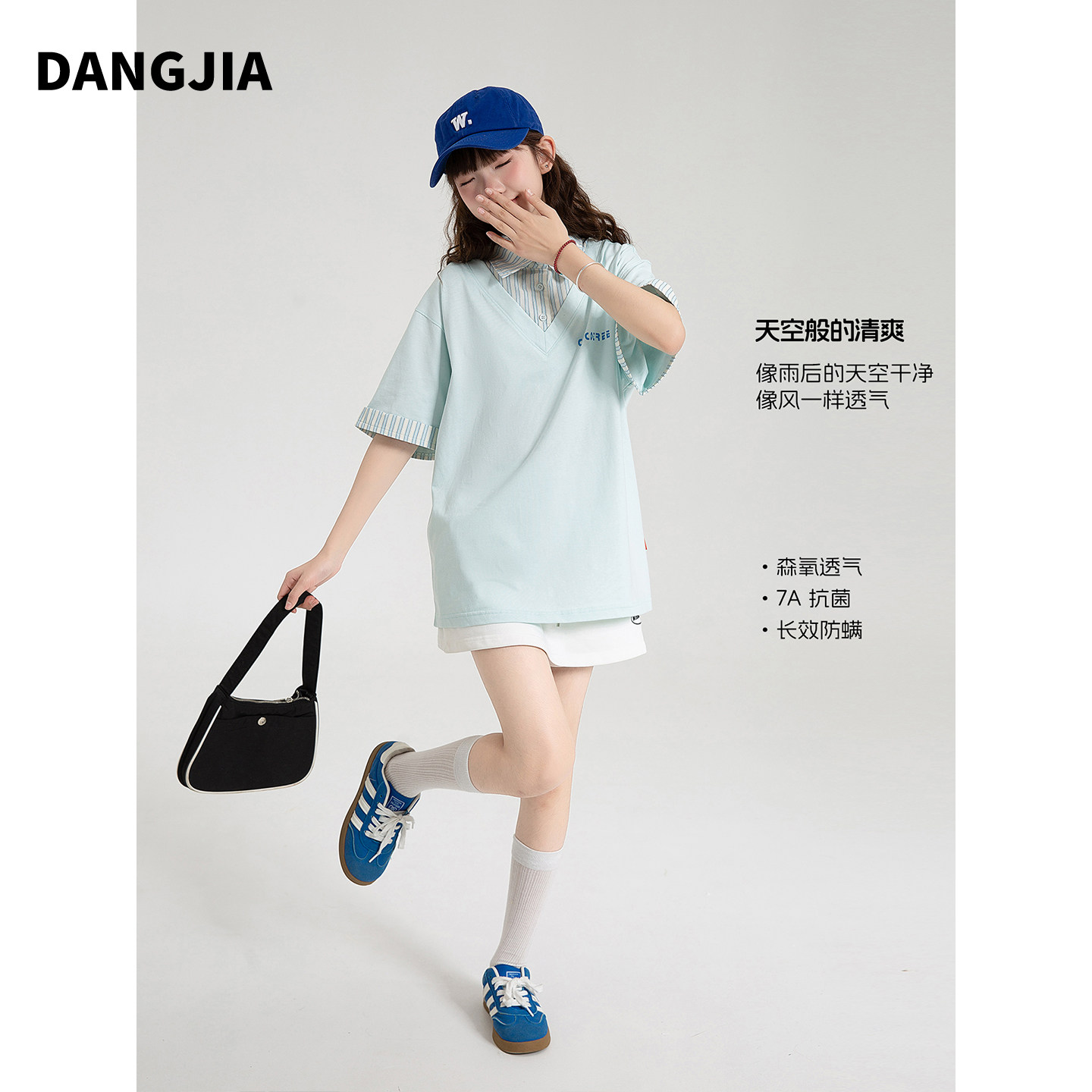 女大童短袖POLO衫2026新款夏装t恤初中生女孩青少年上衣宽松休闲