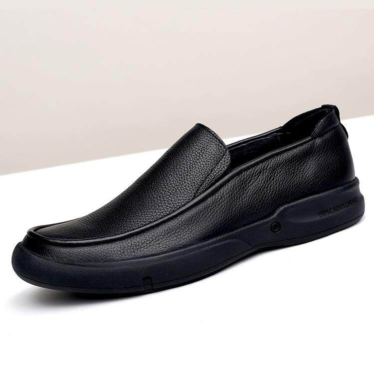 休闲皮鞋男款真皮头层牛皮一脚蹬商务大码软皮软底透气豆豆鞋男士
