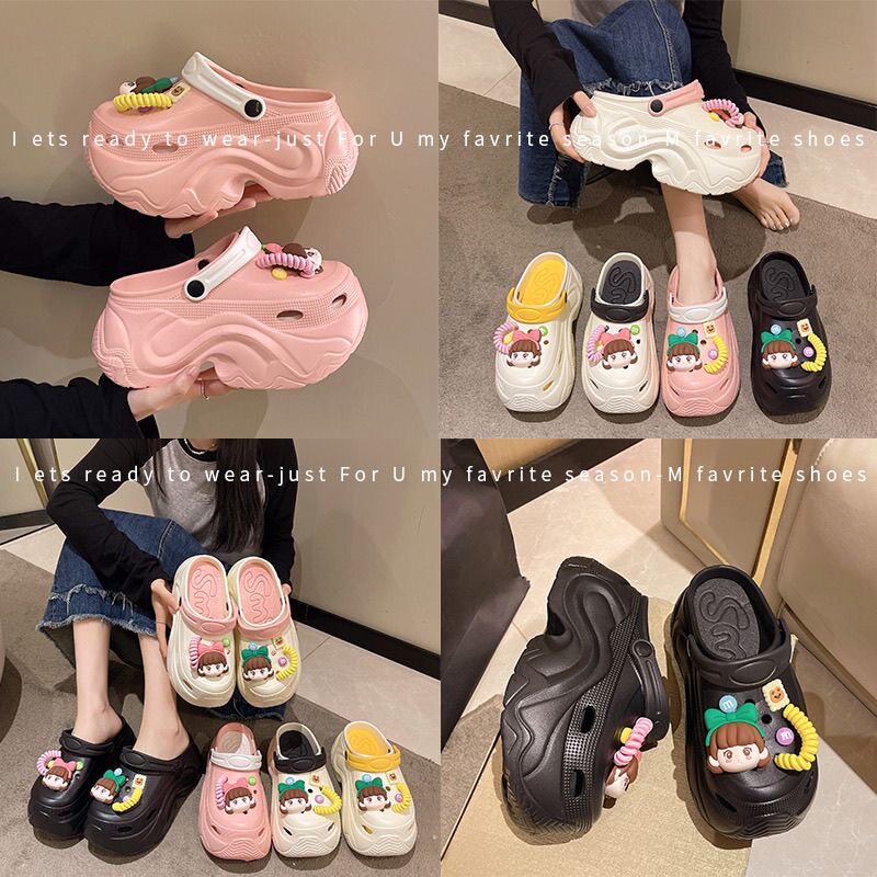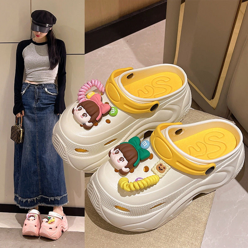 甜美卡通洞洞鞋女外穿厚底10cm增高包头凉鞋小个子夏季防滑拖鞋女