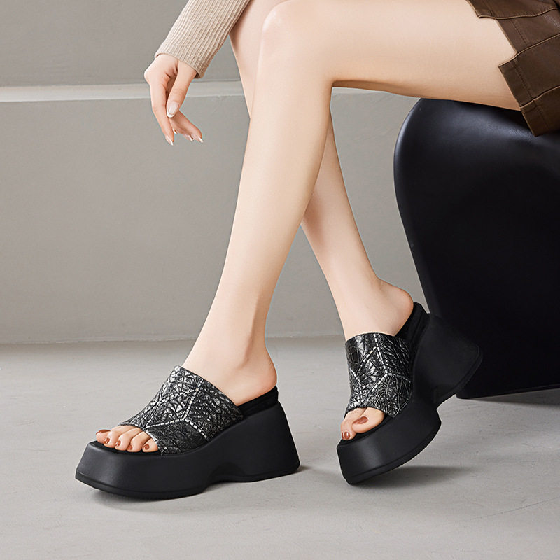 10cm高跟厚底一字拖女夏季坡跟增高防滑外穿小个子休闲显瘦凉拖鞋