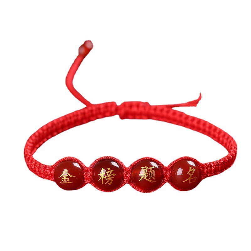 2024年学生逢考必过手链金榜题名红绳红玛瑙刻字烫金中考高考