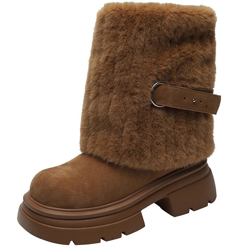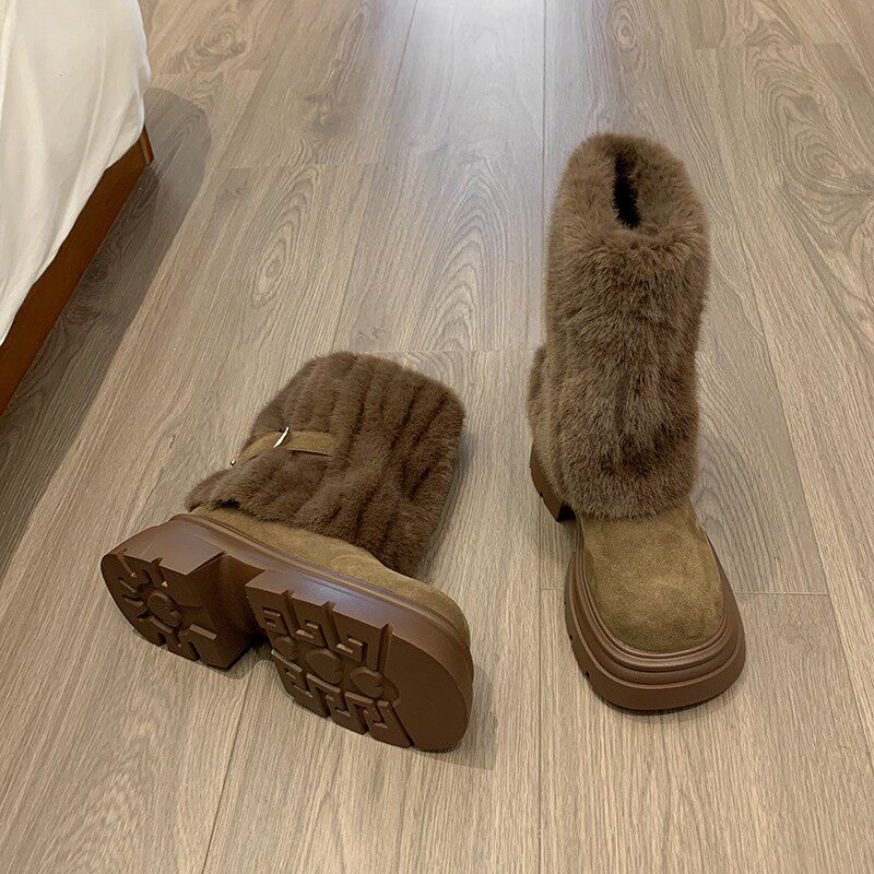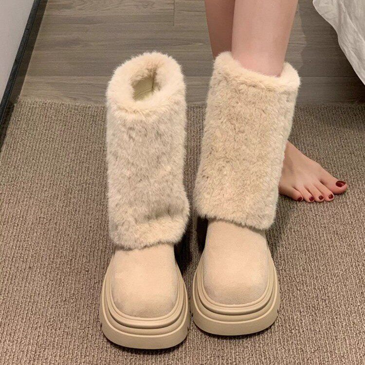 厚底雪地靴女款2025冬季新款中筒靴子洋气流行雪地棉鞋加绒女鞋子