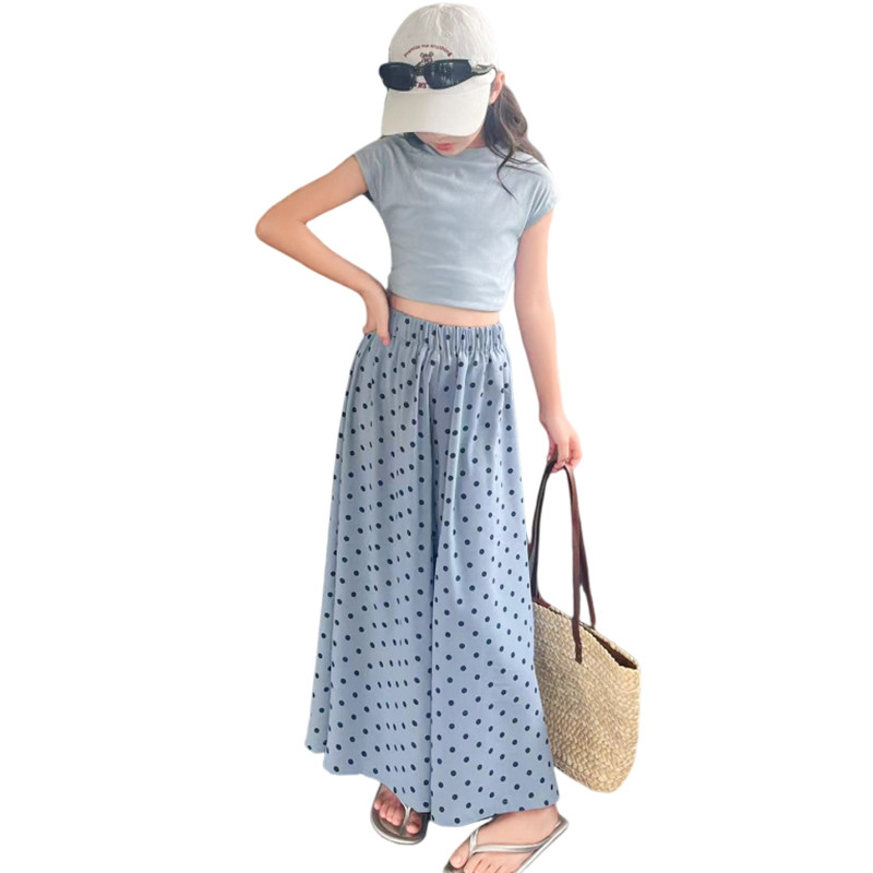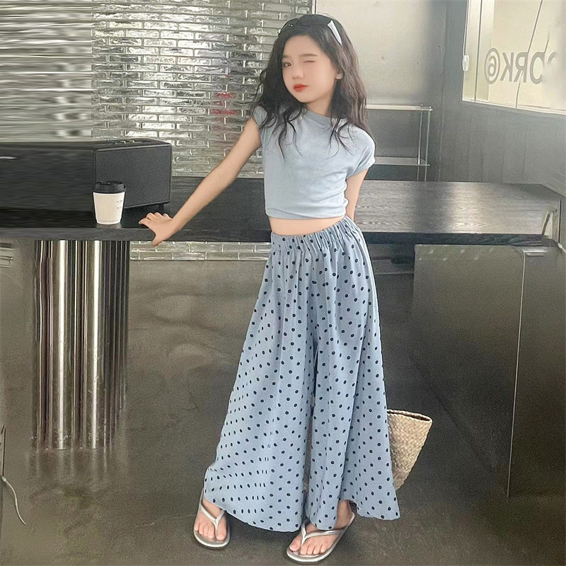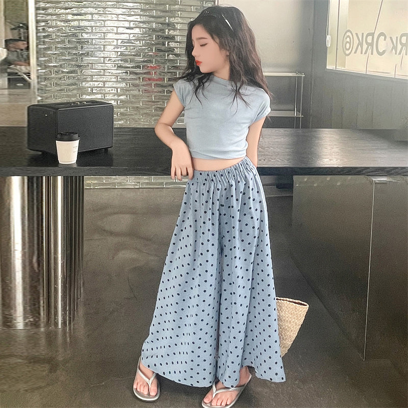 311线报网描述:女童夏装套装2024新款夏季波点儿童九分裙裤