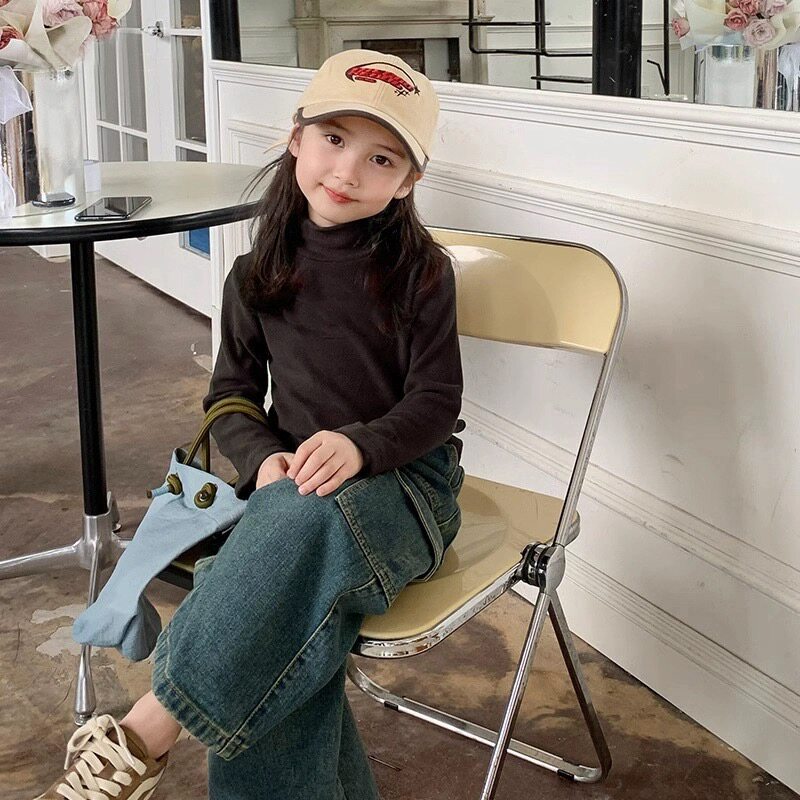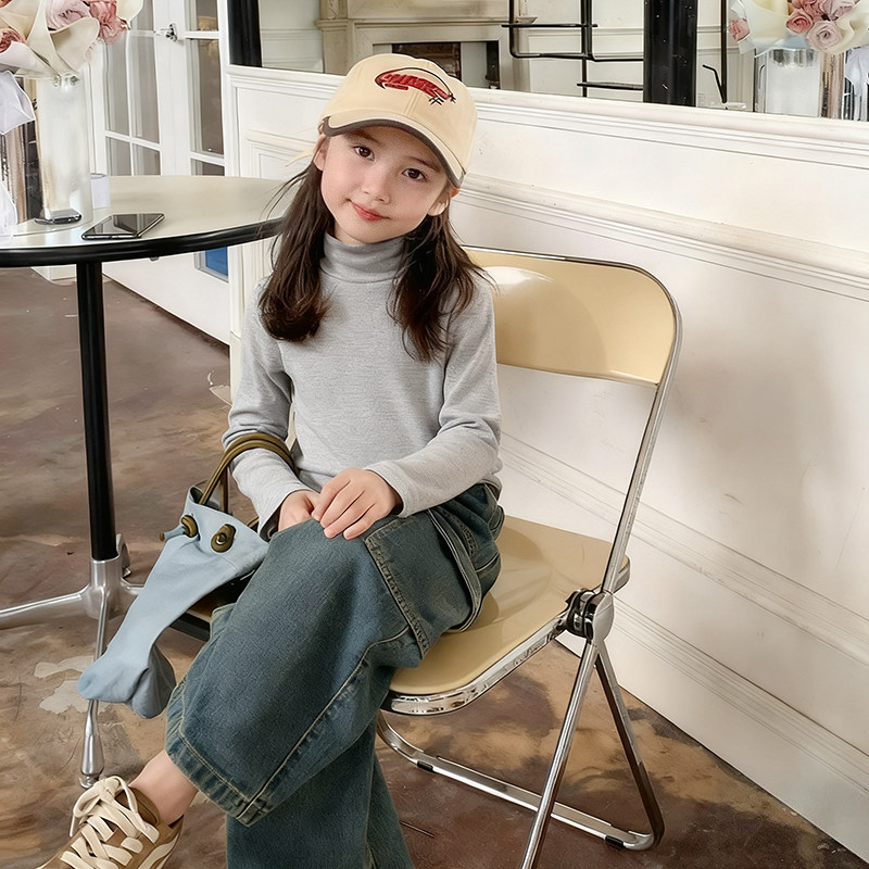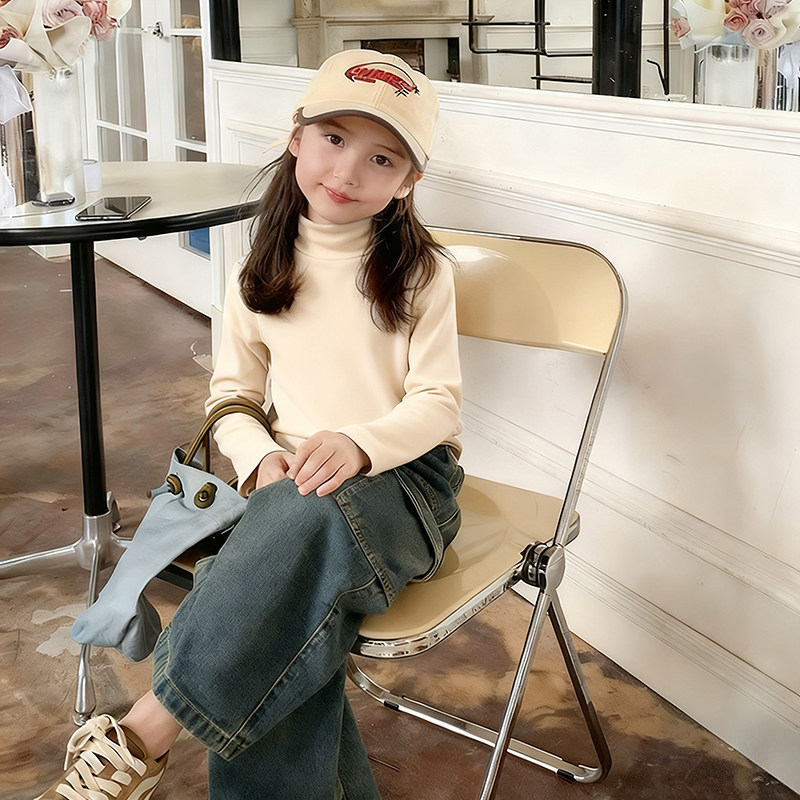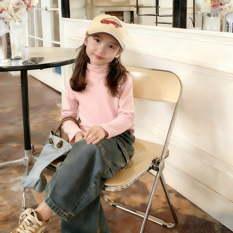 女童打底衫内搭加厚加绒德绒秋冬一体绒半高领可外穿长袖t恤上衣