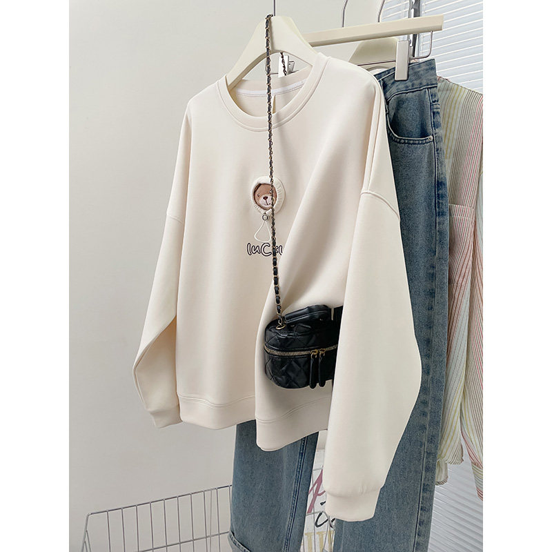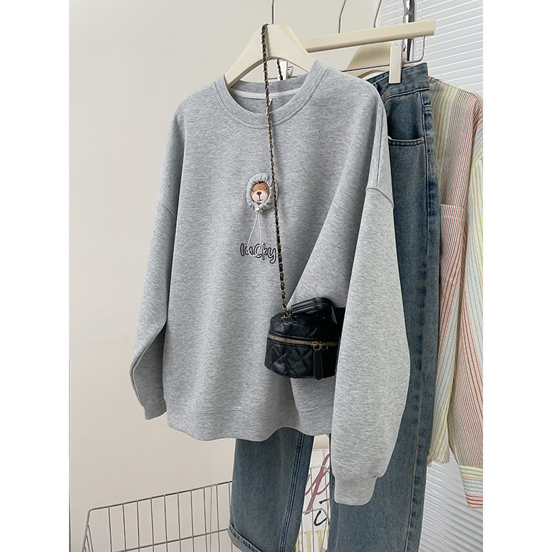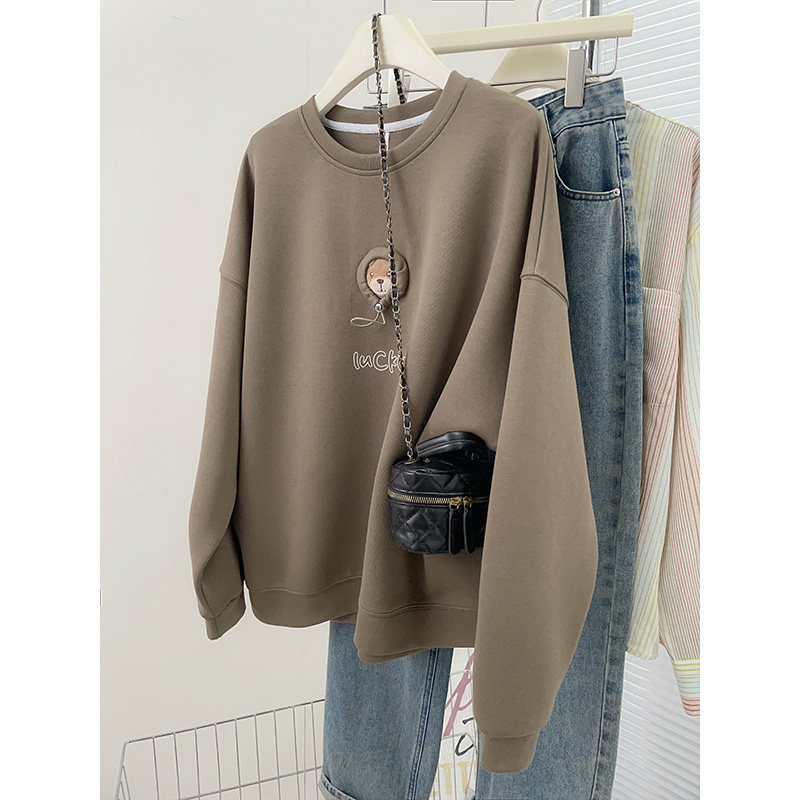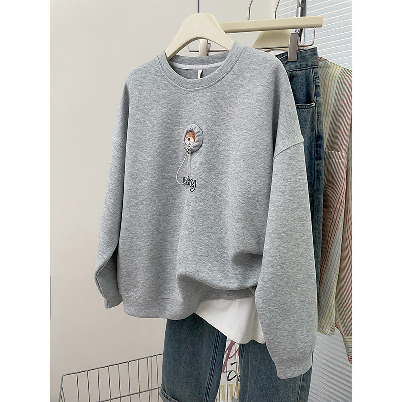 秋冬季2026新款无帽刺绣卫衣女初中生胖mm宽松大码加绒外套小个子