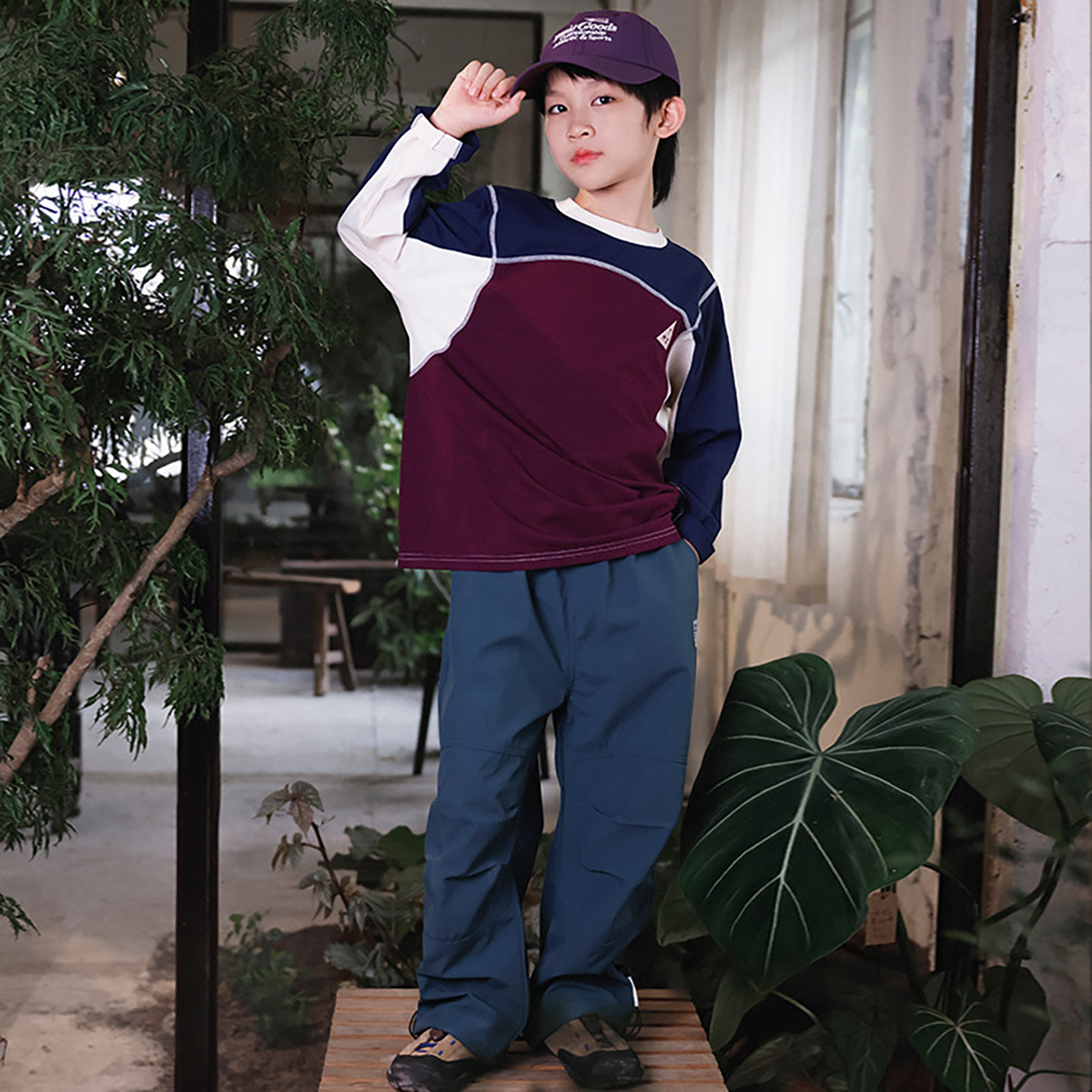 儿童速干t恤2025秋装新款明线撞色拼接男童长袖吸湿透气运动上衣