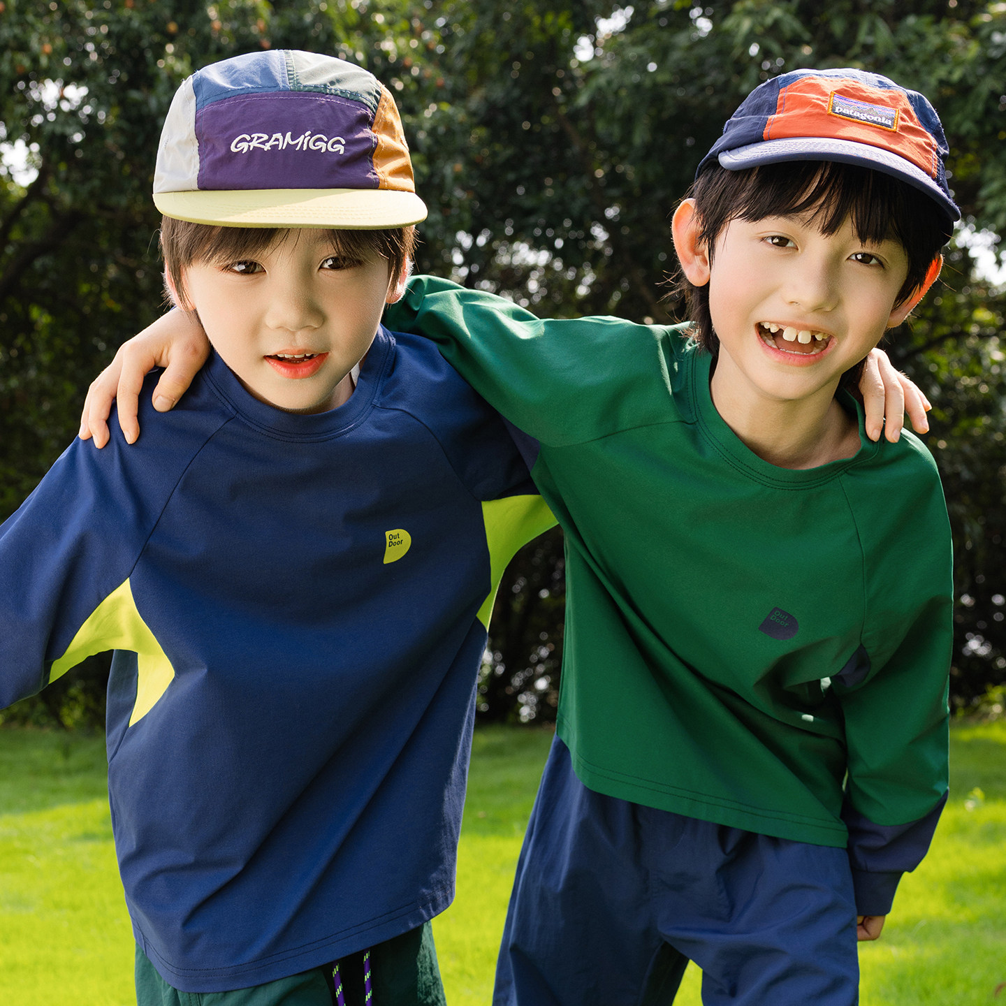 男童秋装上衣2025新款儿童撞色拼接速干长袖T恤山系户外露营衣服