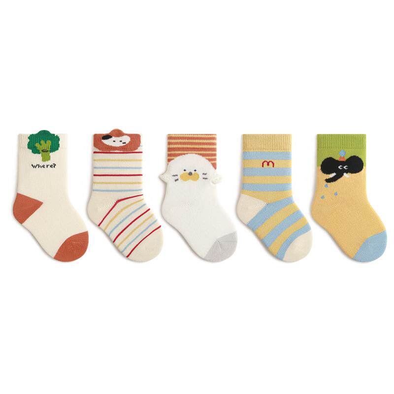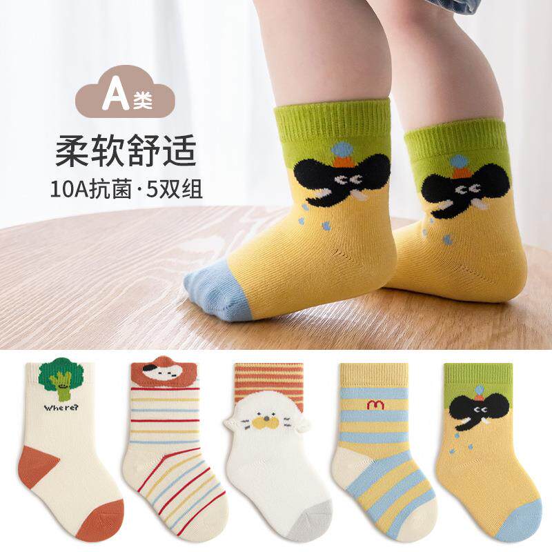 5双男女童袜子春秋卡通条纹韩版中筒棉初生婴儿抗菌宝宝袜A类儿童