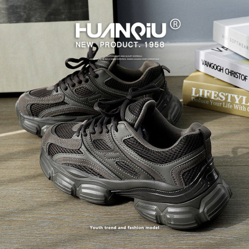 环球黑色老爹鞋轻便软底超轻夏季薄款网面透气女鞋厚底休闲运动鞋