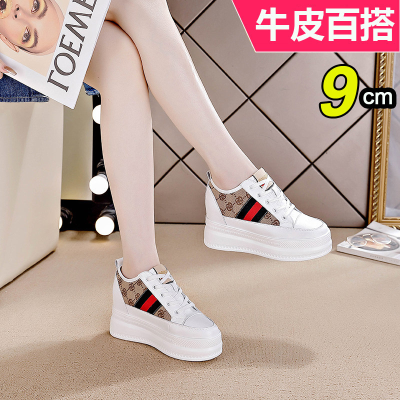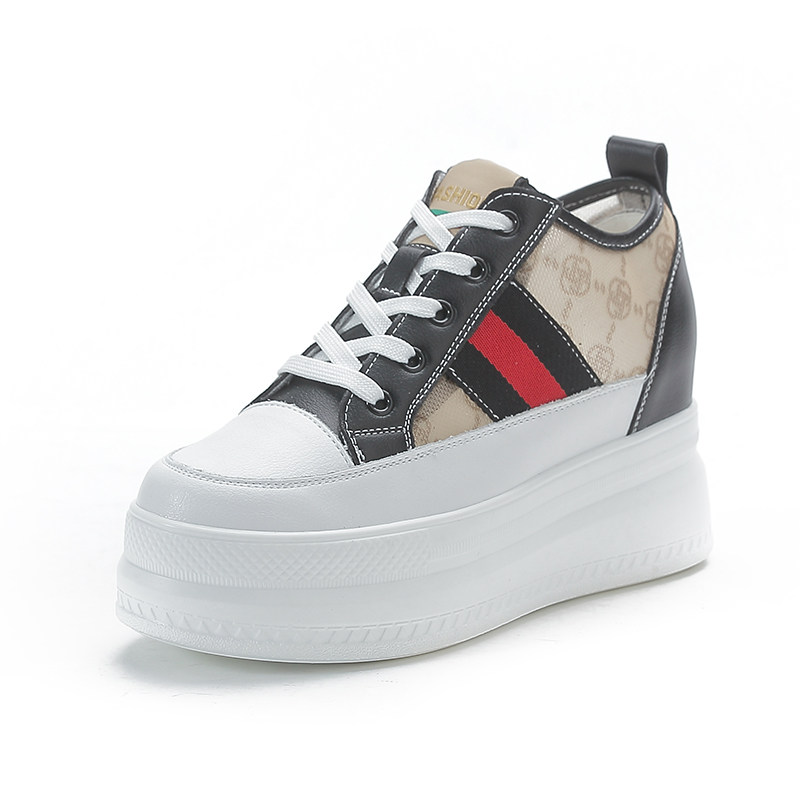 内增高休闲女鞋超高跟厚底松糕黑色夏季透气网面小个子真皮小白鞋