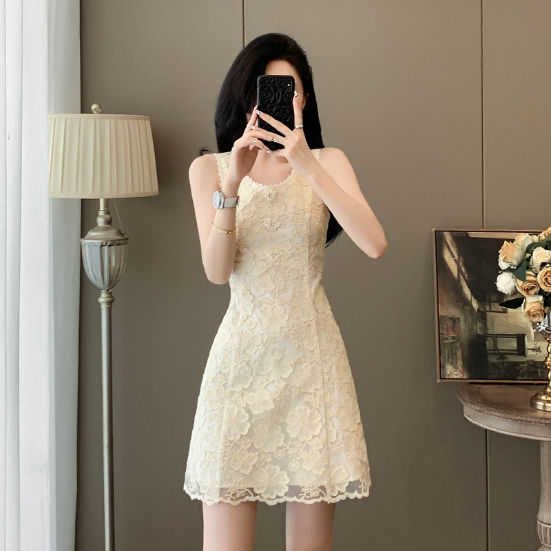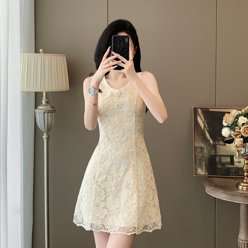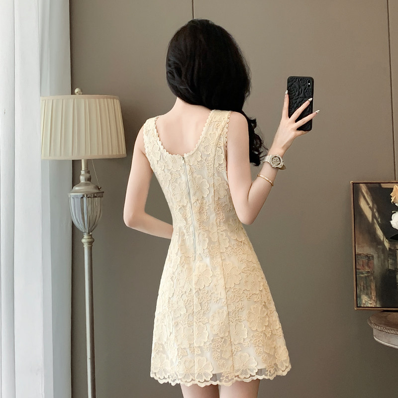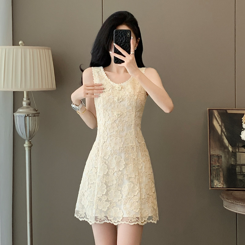 小香风无袖连衣裙女2026新款夏季法式名媛气质显瘦蕾丝小个子裙子