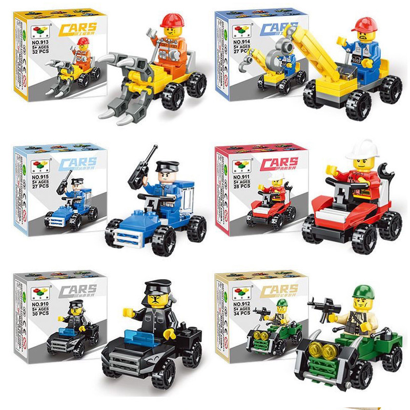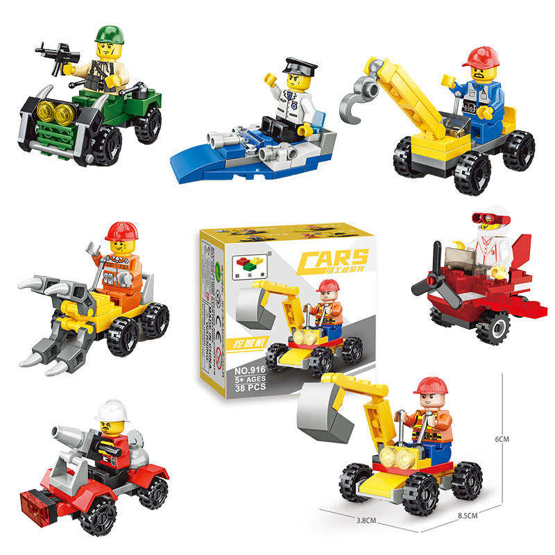 儿童节日礼物工程车积木人仔拼装启蒙益智玩具挖掘机消防车警车