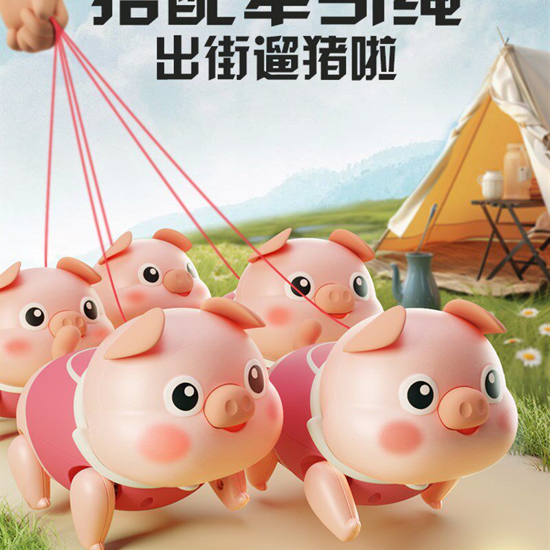电动牵绳小猪会走路唱歌儿童1一3岁宝宝婴儿爬行引导玩具0到6个月