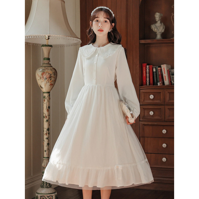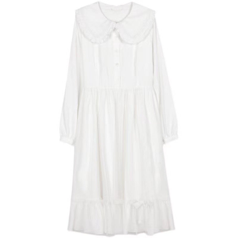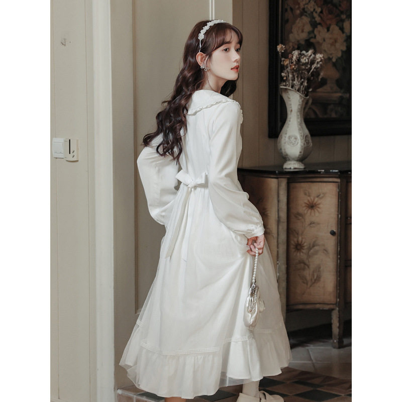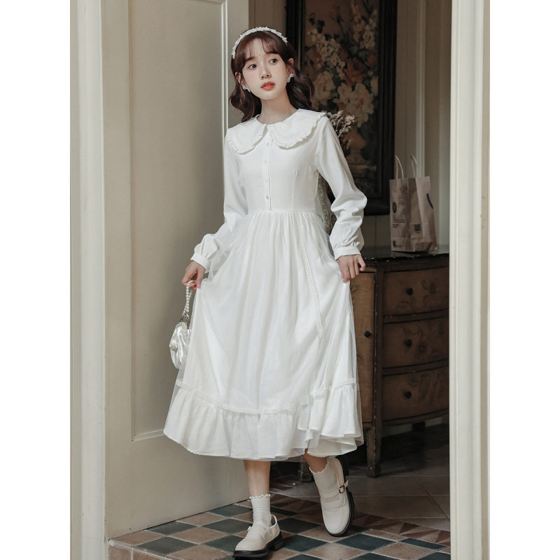白色连衣裙少女春装2026新款初中高中学生学院风娃娃领初恋长裙子