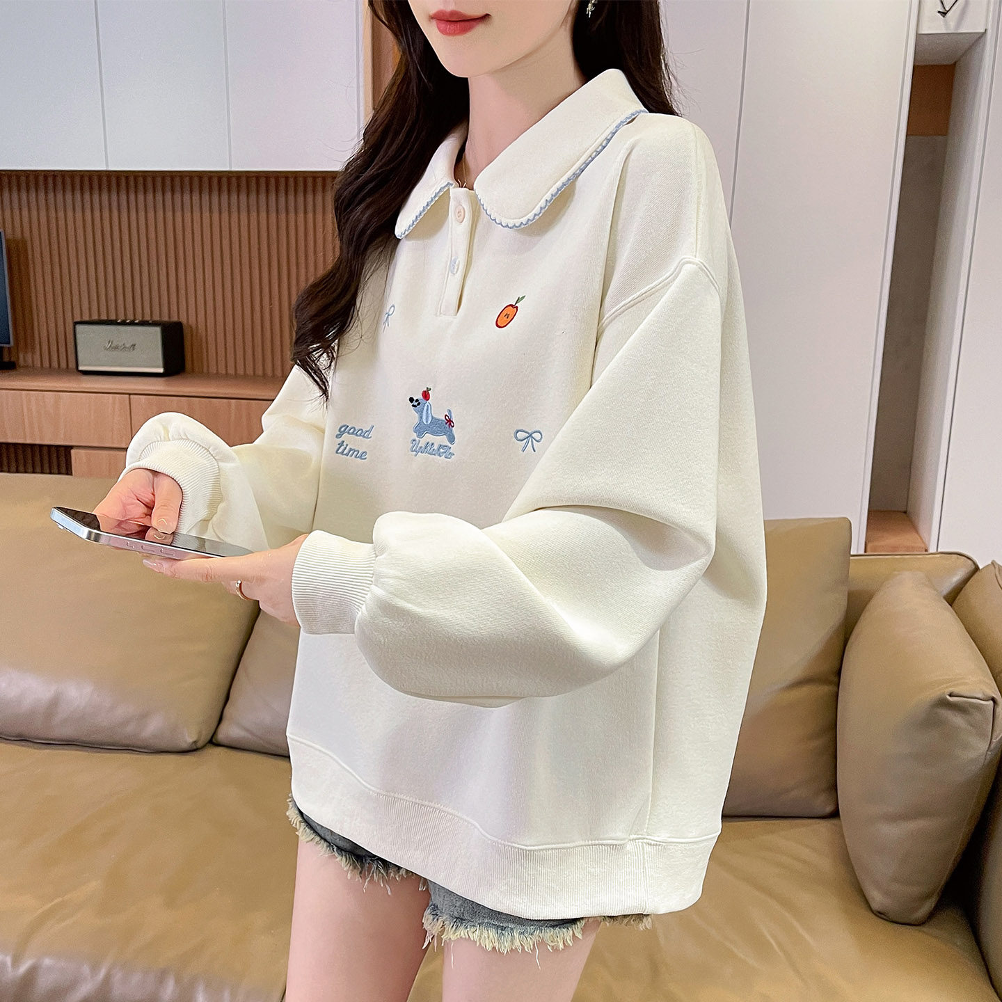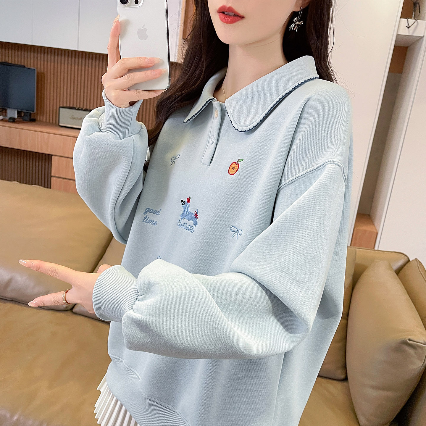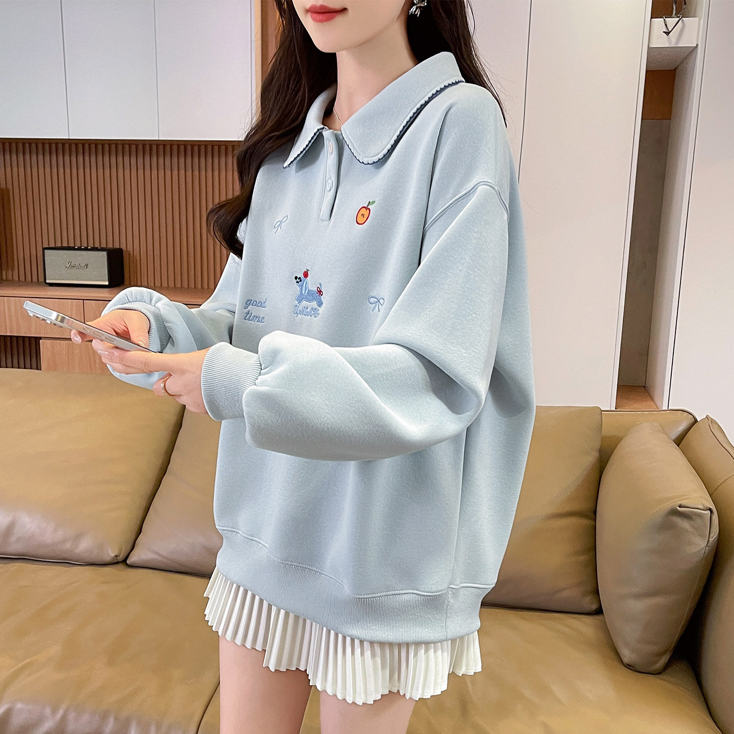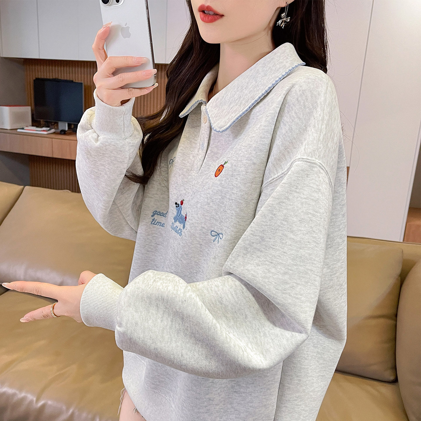 polo领卫衣女2026新款春秋季韩版宽松初中生薄款百搭学生上衣外套