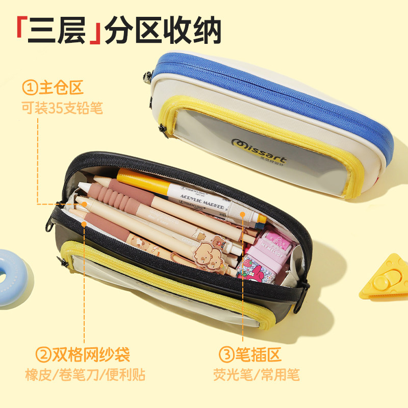 三角笔袋耐磨防污防水初中生专用男孩款透明文具盒2026新款小学生大容量马克笔高颜值ins收纳男生铅笔盒