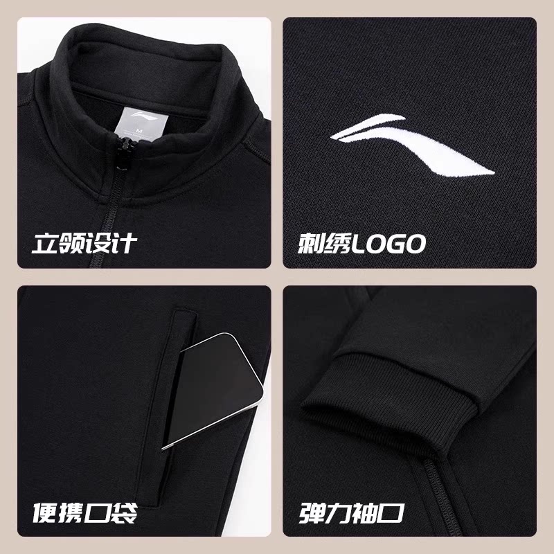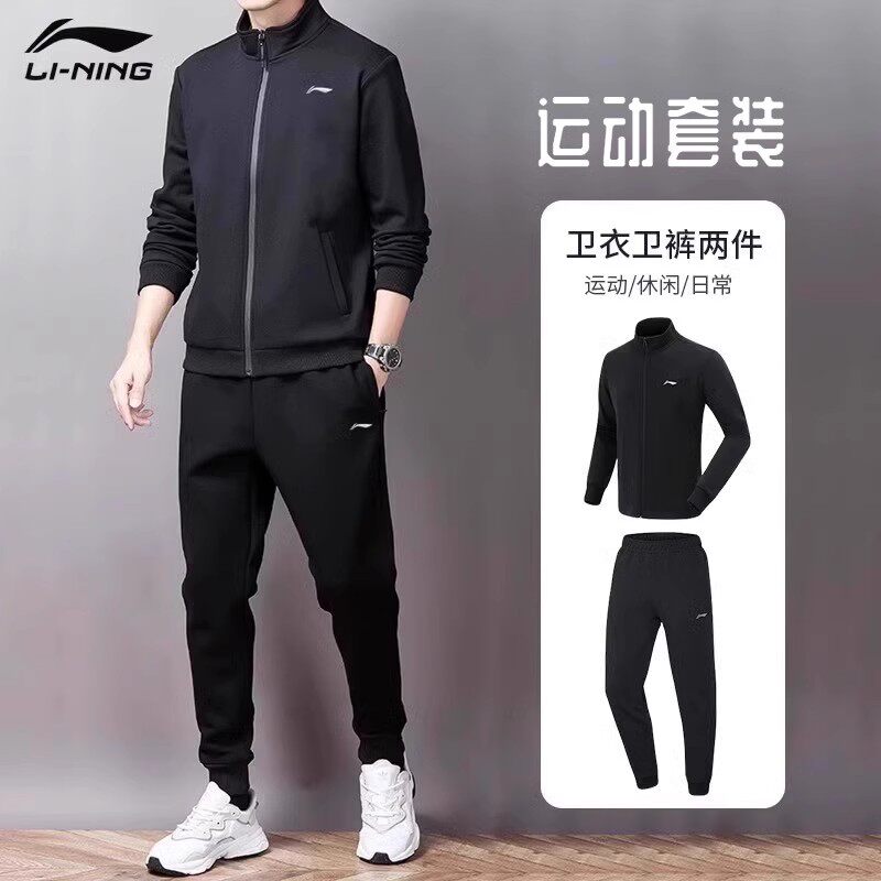 李宁运动套装男2026春季新款外套开衫卫衣长裤棉质透气跑步运动服