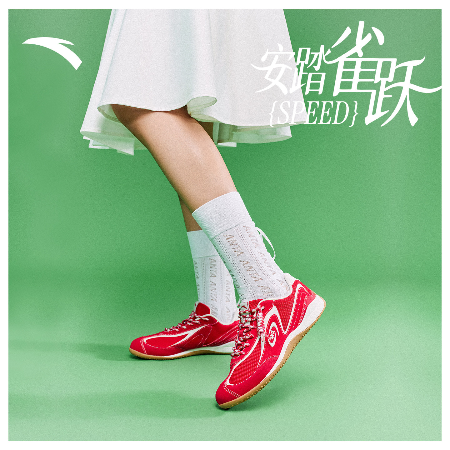安踏驰跃薄底鞋女鞋关晓彤同款夏季透气板鞋赛车鞋正品德训运动鞋