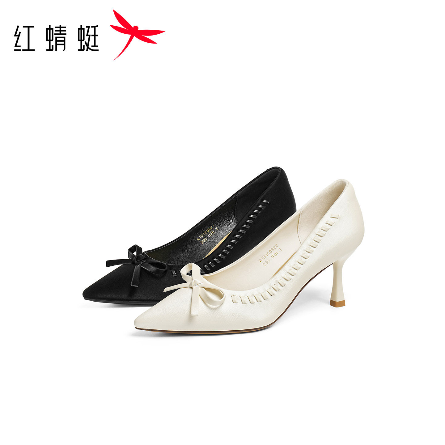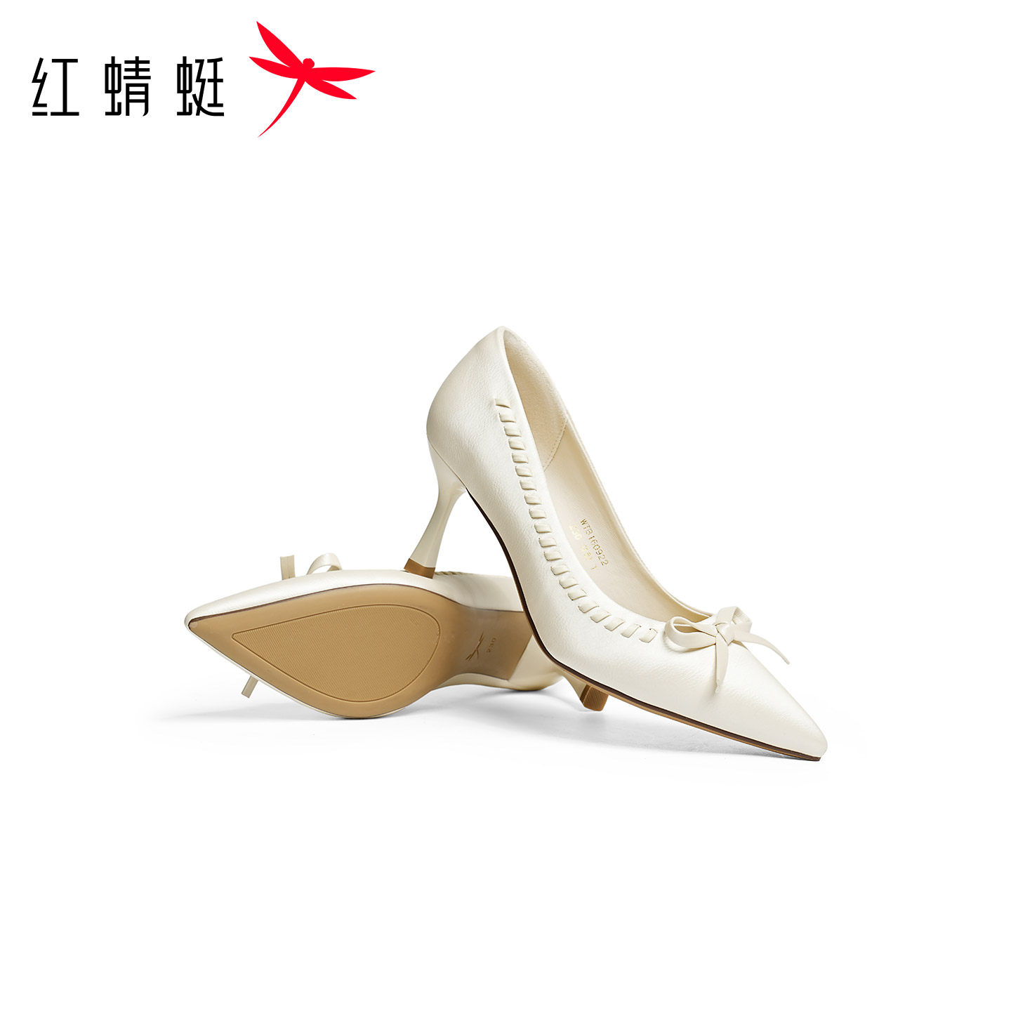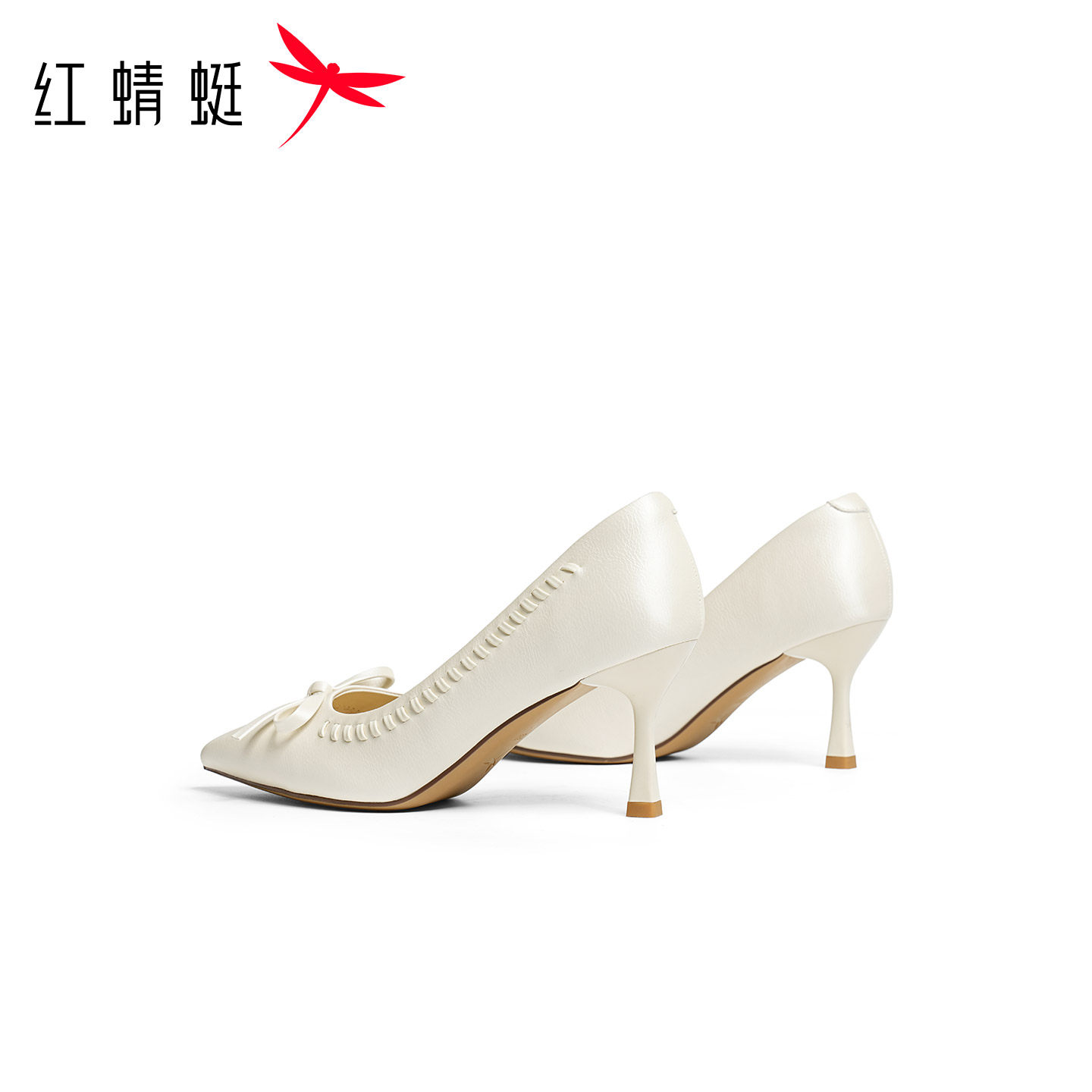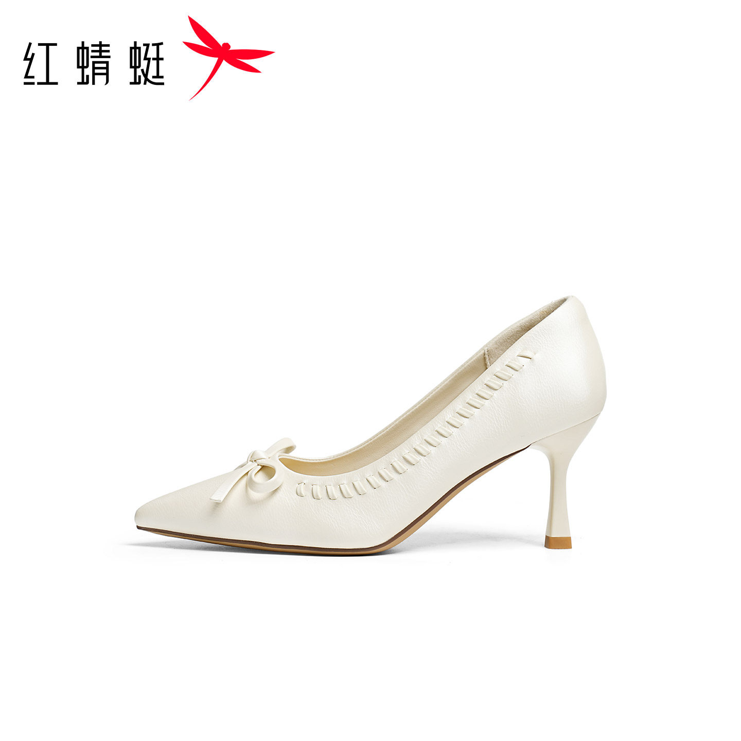 红蜻蜓高跟鞋女2026春季新款女鞋法式不累脚皮鞋白色尖头细跟单鞋