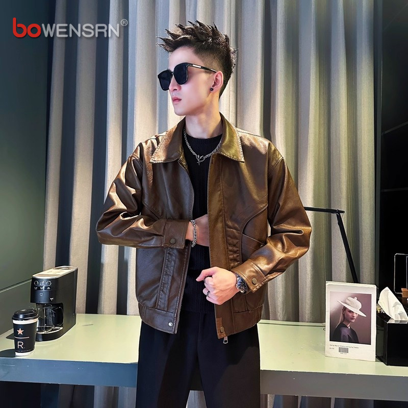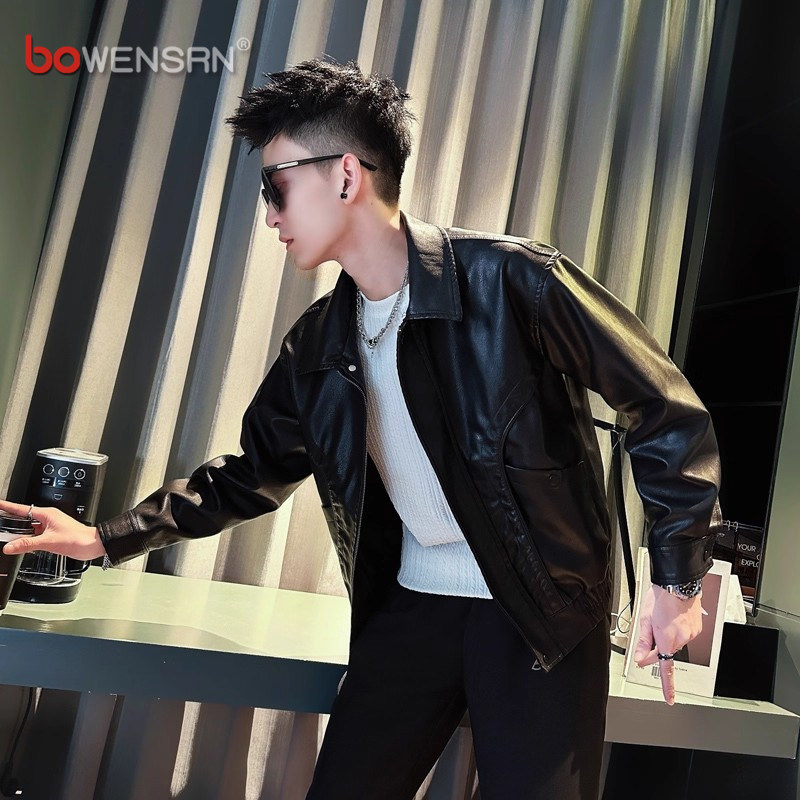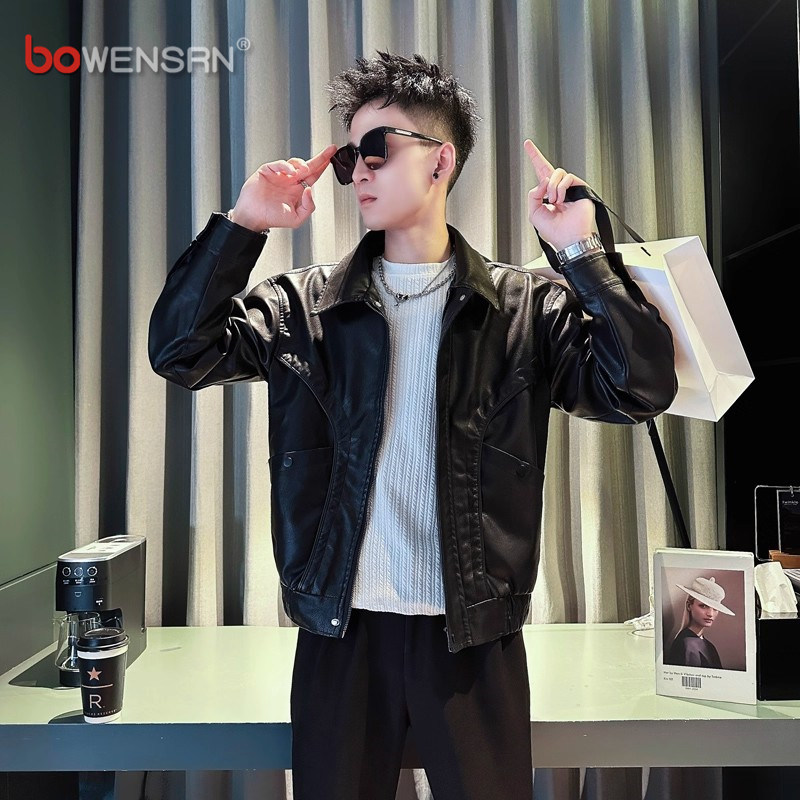 高级感皮衣外套男士2025新款春秋冬季痞帅翻领机车皮夹克男款加绒