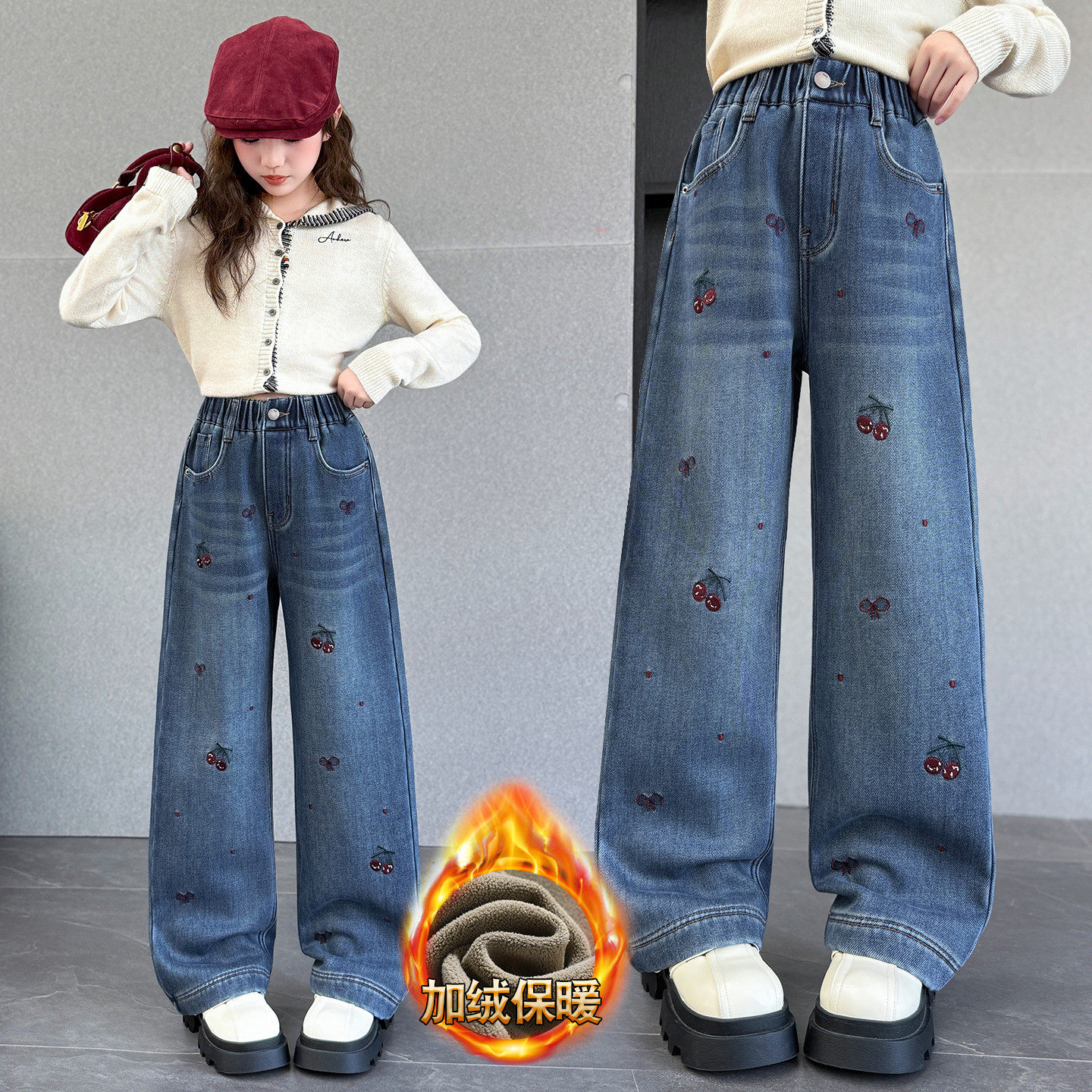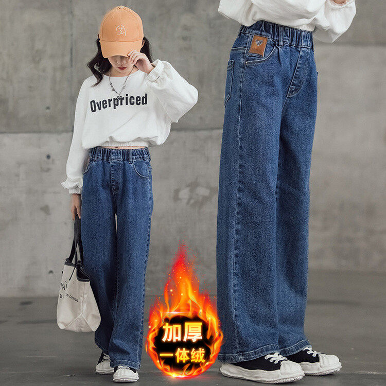 女童春装阔腿牛仔裤2026新款洋气春休闲长裤初中生女孩宽松直筒裤