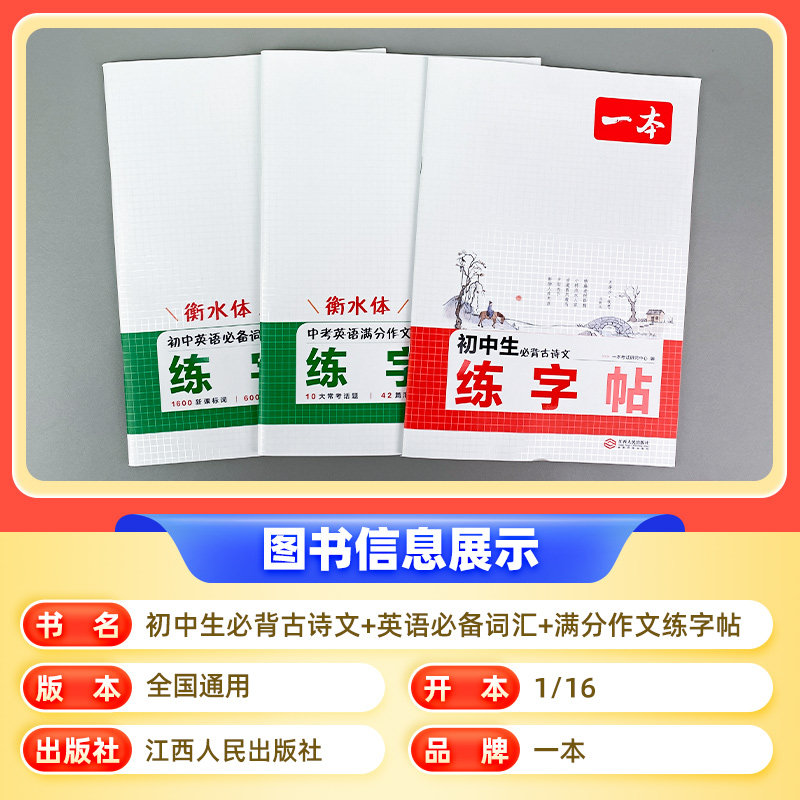 2026一本初中衡水体英语字帖七八九年级上册人教版中考英语必备词汇满分作文初一二三初中生必背古诗文同步练字帖字体练习每日一练