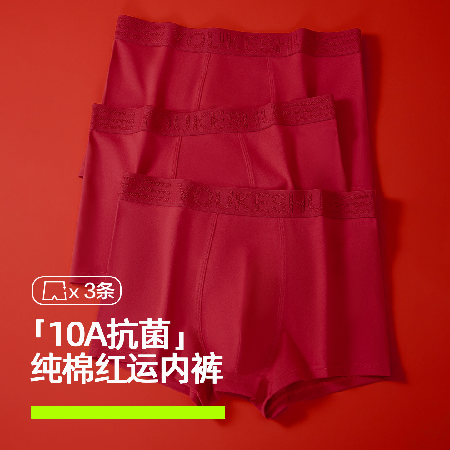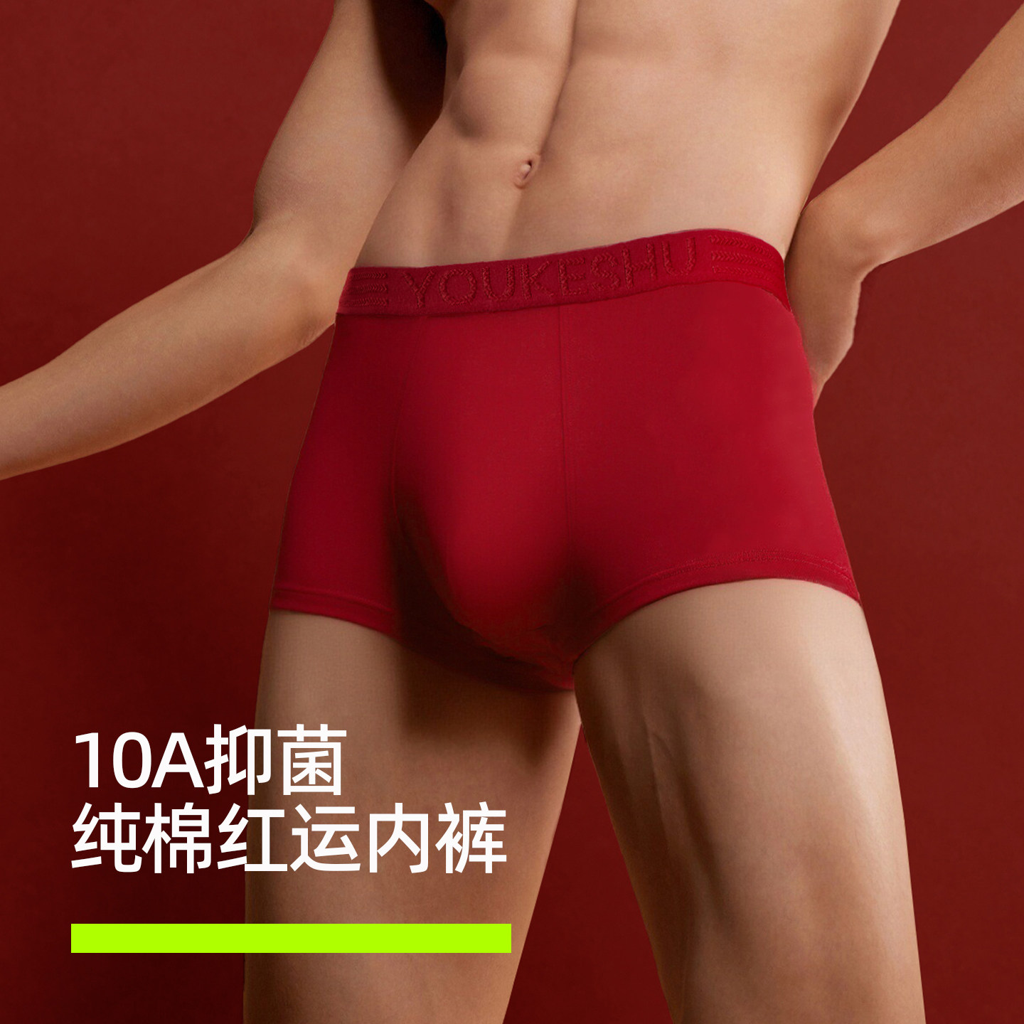 有棵树本命年男士内裤10A抗菌纯棉裆红内裤男款男生红色短裤属马
