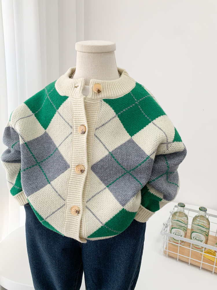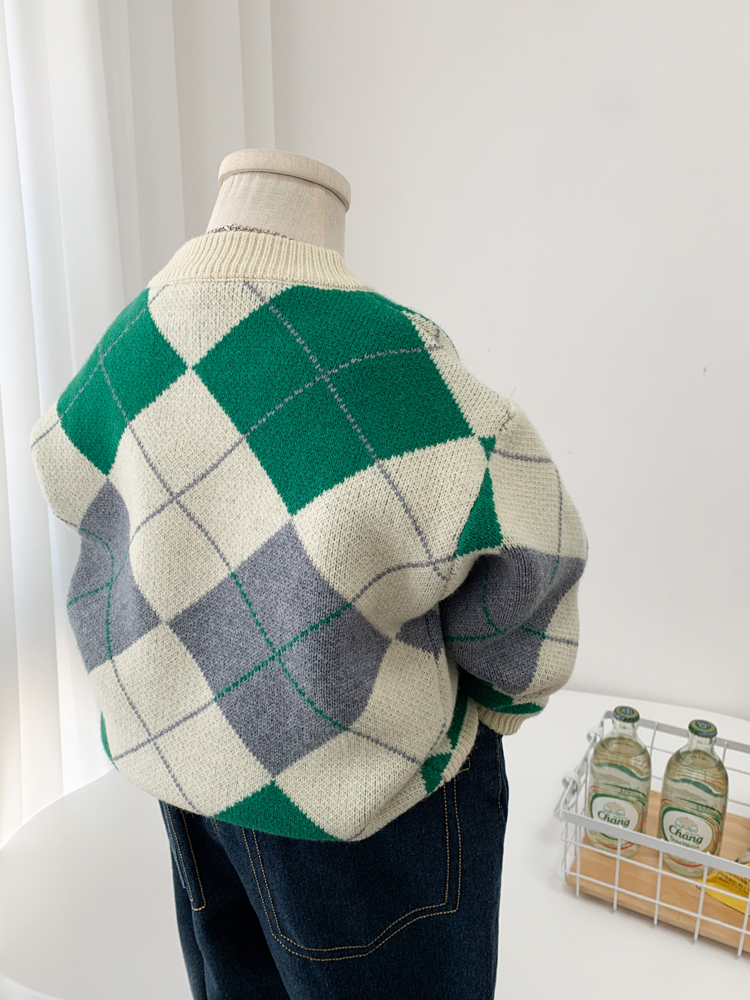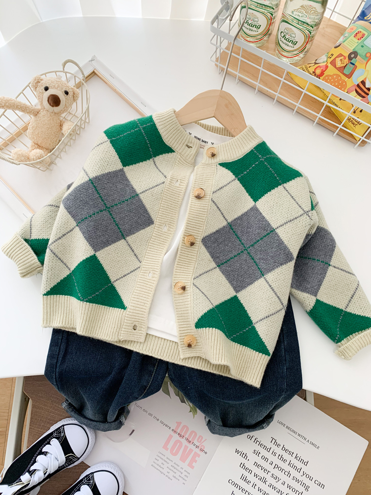 男童开衫毛衣洋气中小童春秋装外套儿童韩版时尚菱形针织衫百搭潮